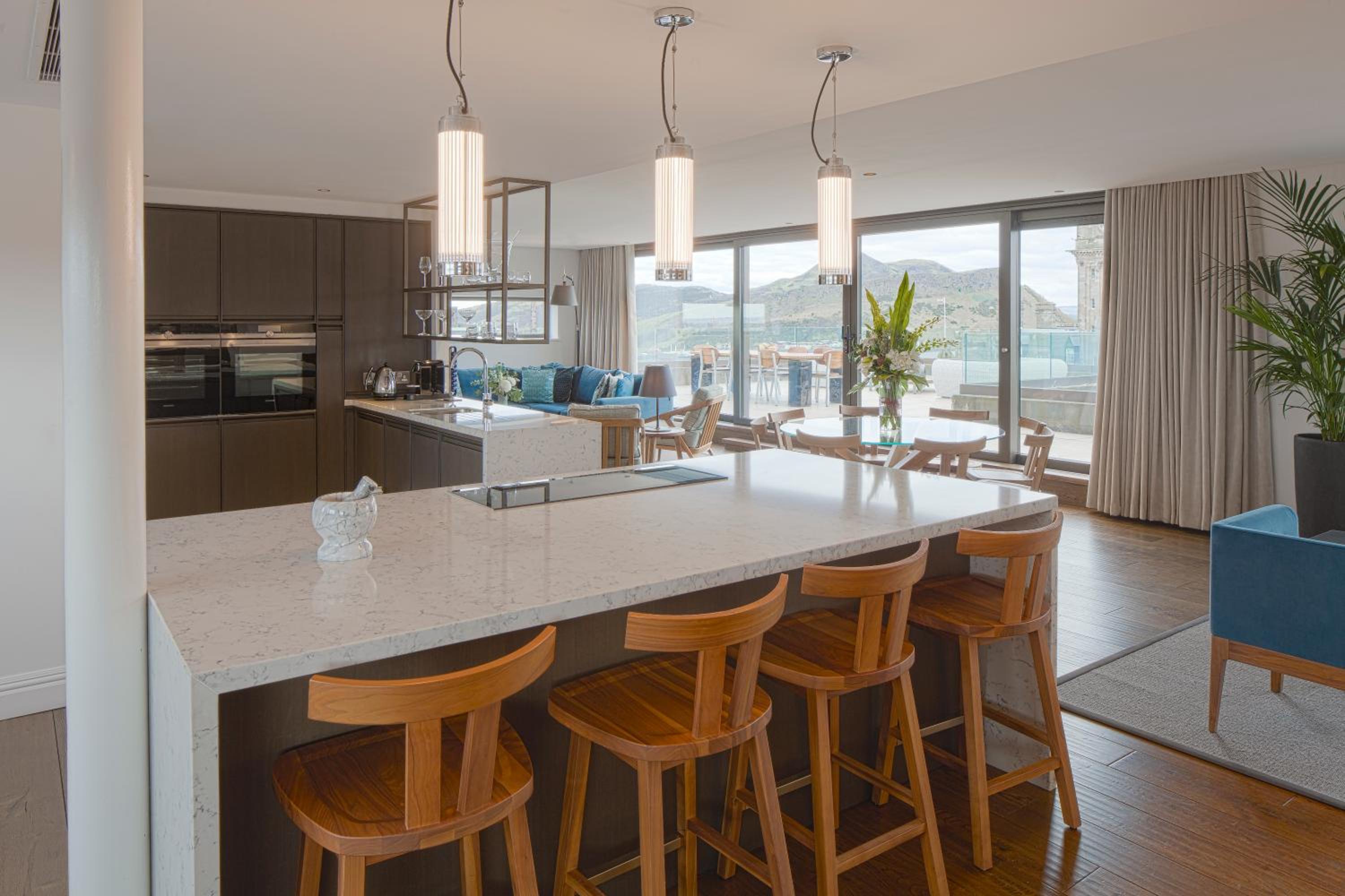 The Edinburgh Grand offers elegant apartments just a short stroll from Princes Street. Each apartment boasts modern amenities, including a fully equipped kitchen and a comfortable living area with a flat-screen TV. Guests can also enjoy the historic charm with period features and luxurious bathroom amenities.