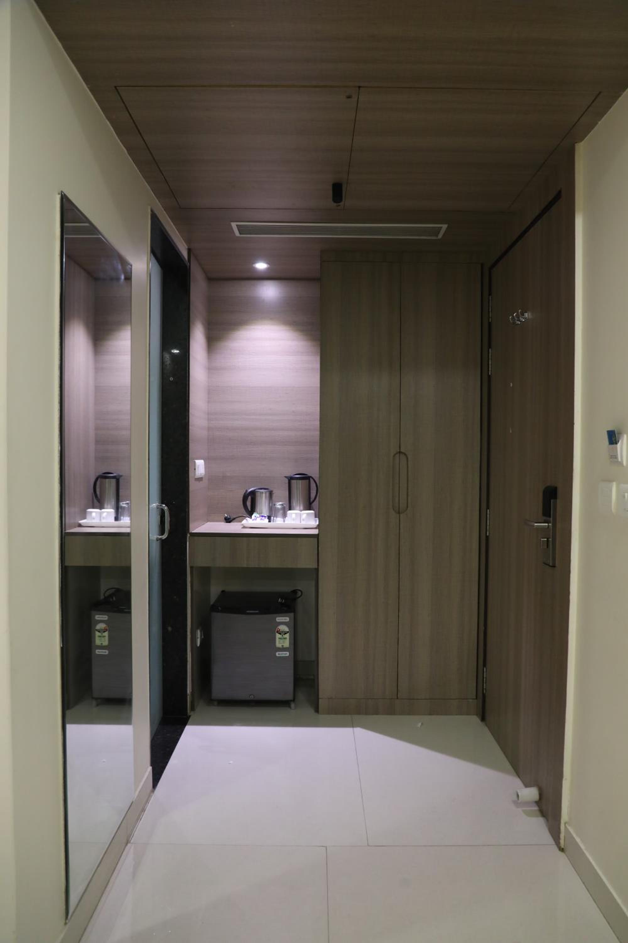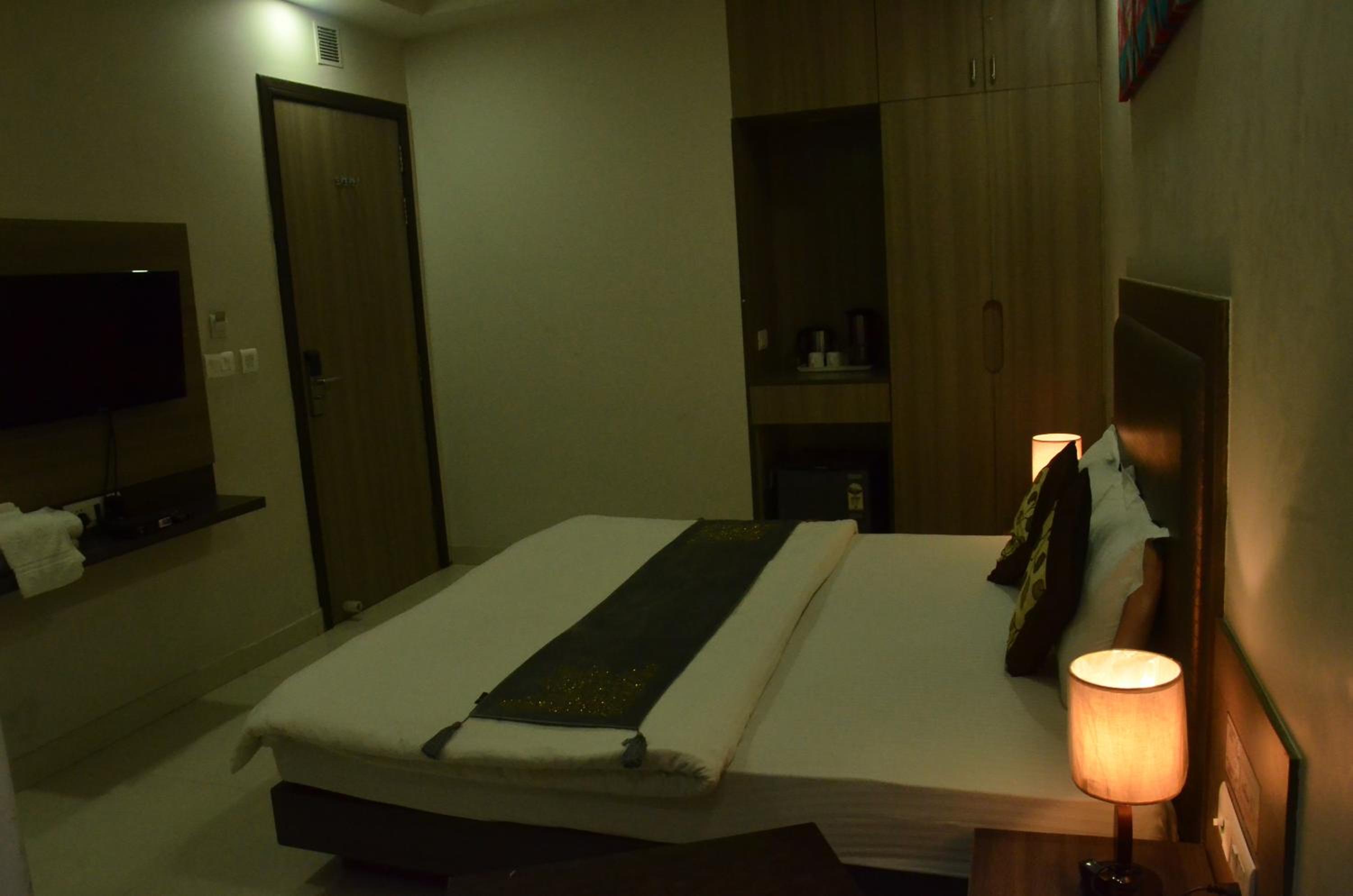 O aspecto geral do hotel é limpo e moderno. Eu gostei da localização no bairro Karol Bagh, que tem metrô muito restaurante, loja e comércio interessantes nas proximidades. O preço é bom pelo que você recebe. Tem frigobar, a cama é grande, o silêncio me chamou atenção positivamente pois saí de hotel muito barulhento.