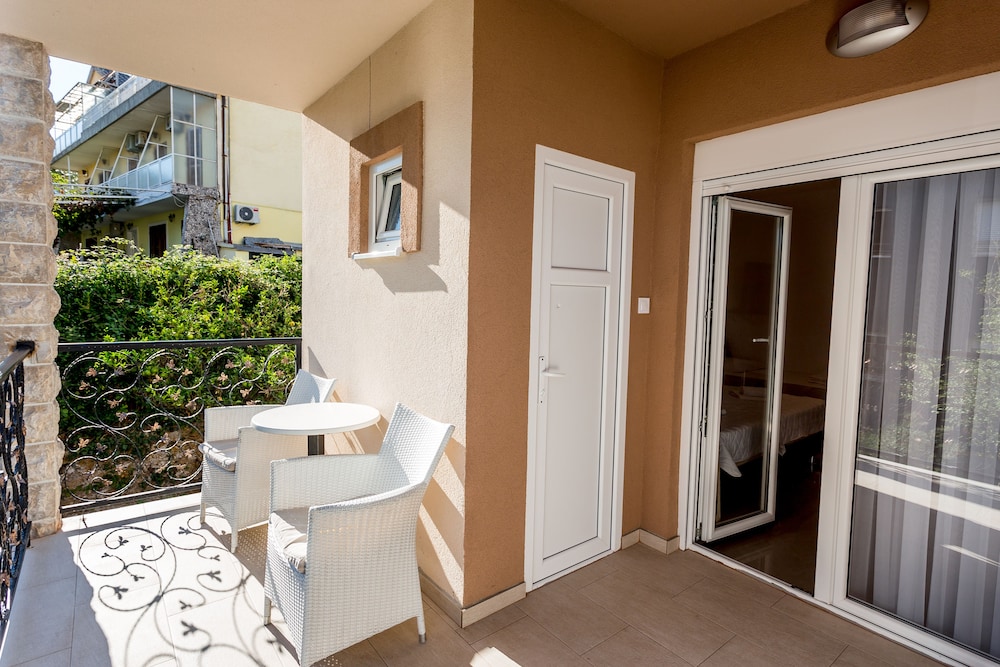 Lovely secluded balcony but sadly no sa view but pleasant outlook over garden. like most of Hercig Novi very steep path up to apartment, but very short so not a problem