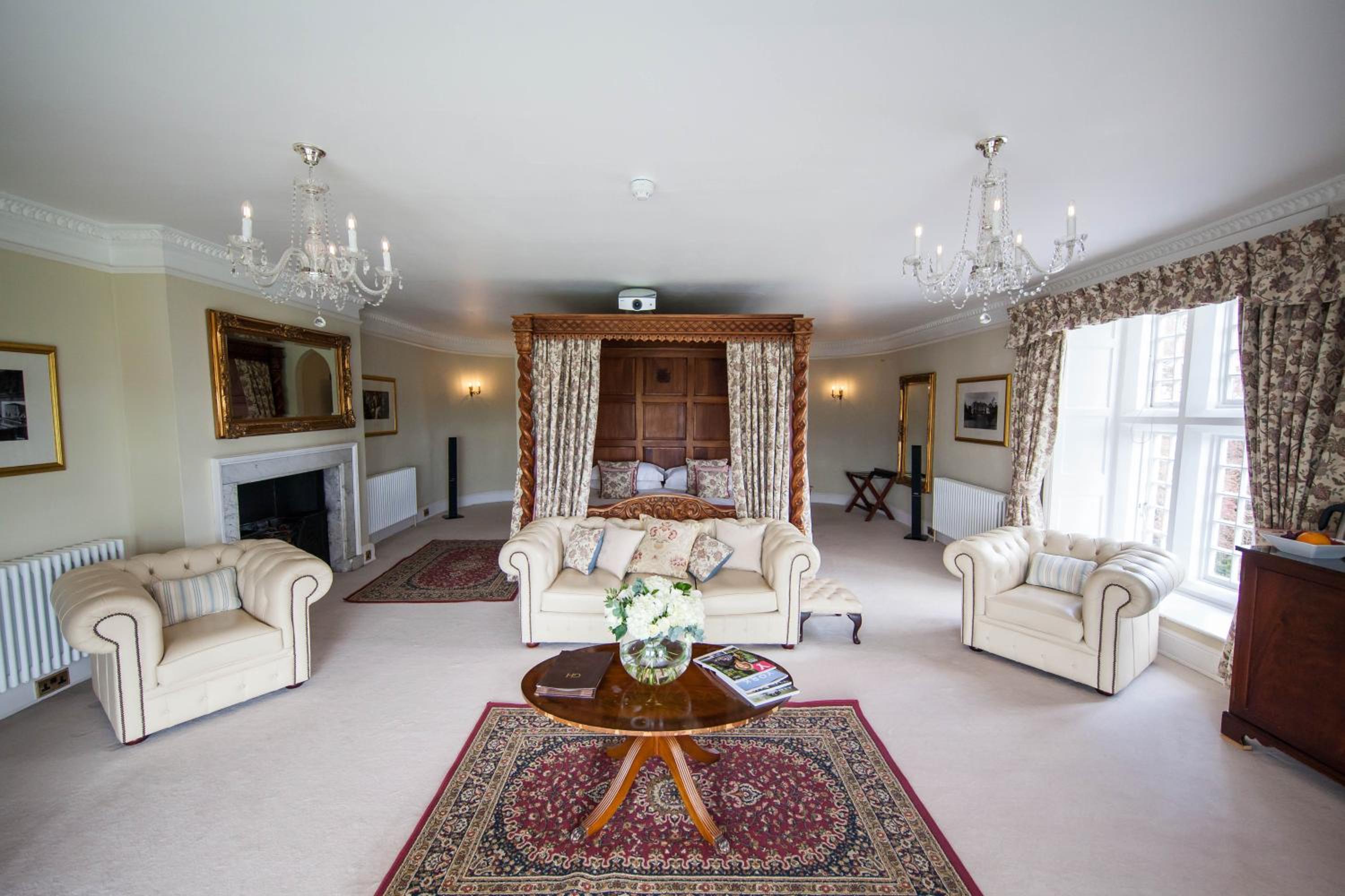 Goldsborough Hall, once the residence of Princess Mary, offers a regal experience in North Yorkshire. Indulge in the grandeur of our main hall suites featuring exquisite furnishings, modern amenities, and opulent bathrooms with spa baths.