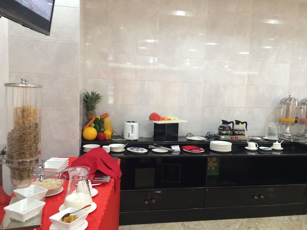 Breakfast is served at the rooftop and there is a wide choice. The staff is so nice and polite!