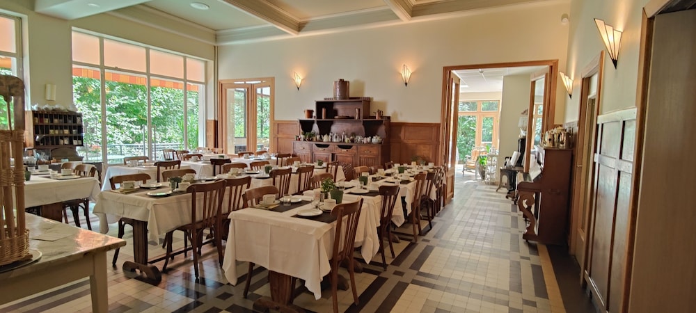 Very friendly staff. Parking available in private area. Extensive breakfast buffet. Lovely located in centre of village, easy access to stores and restaurants. Our room and parts of the hotel do need some updates.