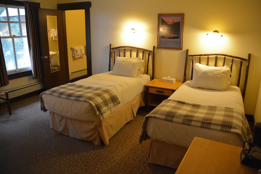 What a lovely inn! National Park Inn is both historic and modern. We loved the friendly and expert wait staff in the dining room, the patient and accessibe front desk staff answerng a million questions, the large porch veranda for afternoon reading and dozing in rocking chairs, the afternoon tea served with scones in the living room, the comfortable rooms and accessibility to all things Mt. Ranier. We chose the hotel plan (5 night) with breakfast and dinner. The staff get to konw you quickly and are friendly and smart and gracious. The room we chose was the double with sink....we shared showers and bathrooms with others on the floor. This was not a hassle. We never saw anyone else! It is more like a European experience of shared facilities but everyone is quite respectful and so the whole experience is lovely and comfortatble.