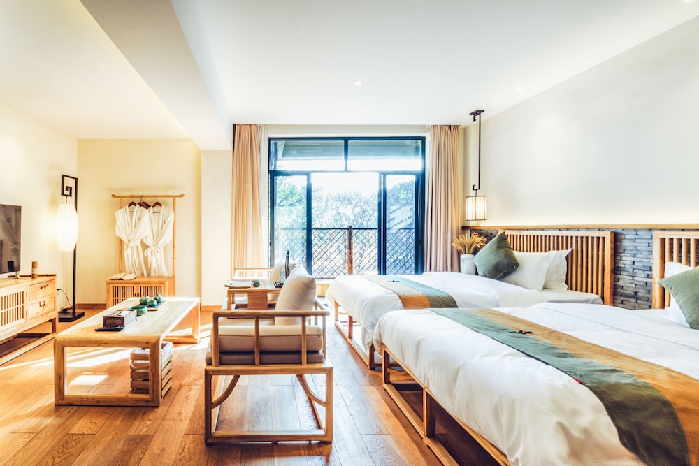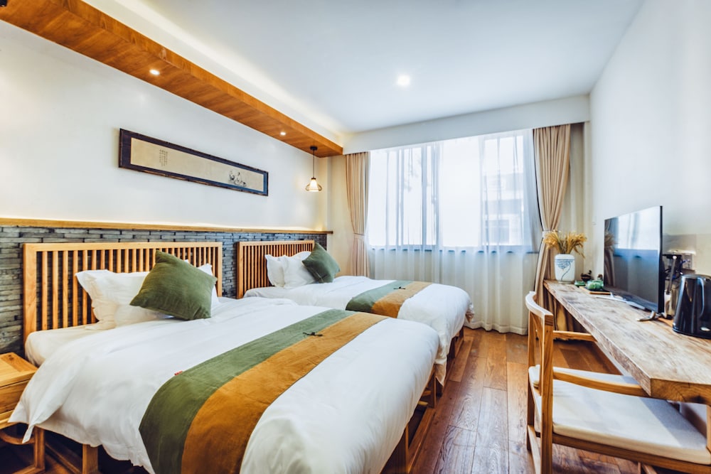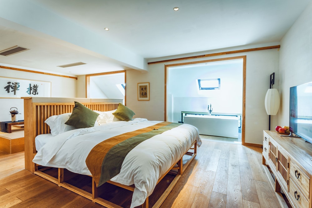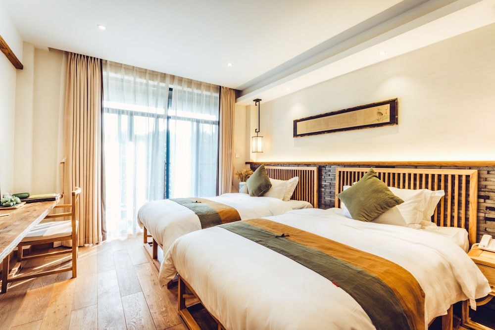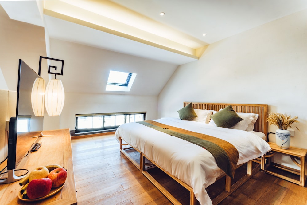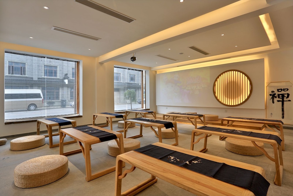 Charming Garden Views and complimentary Wi-Fi enhance your stay at Wuzhen Zen Boutique Inn. Enjoy a delightful cafe experience and savor a daily local cuisine breakfast from 8 AM to 10 AM. Stay entertained with flat-screen TVs and stay refreshed with complimentary toiletries in your air-conditioned room. Convenient Amenities include dry cleaning, a 24-hour front desk, and free self-parking. Explore nearby attractions like Wuzhen Scenic Area and Nanxun Town History Museum. Let our multilingual staff assist you during your visit. Immerse Yourself in Local Culture at this cozy retreat in Jiaxing. Book your stay today for a memorable experience.