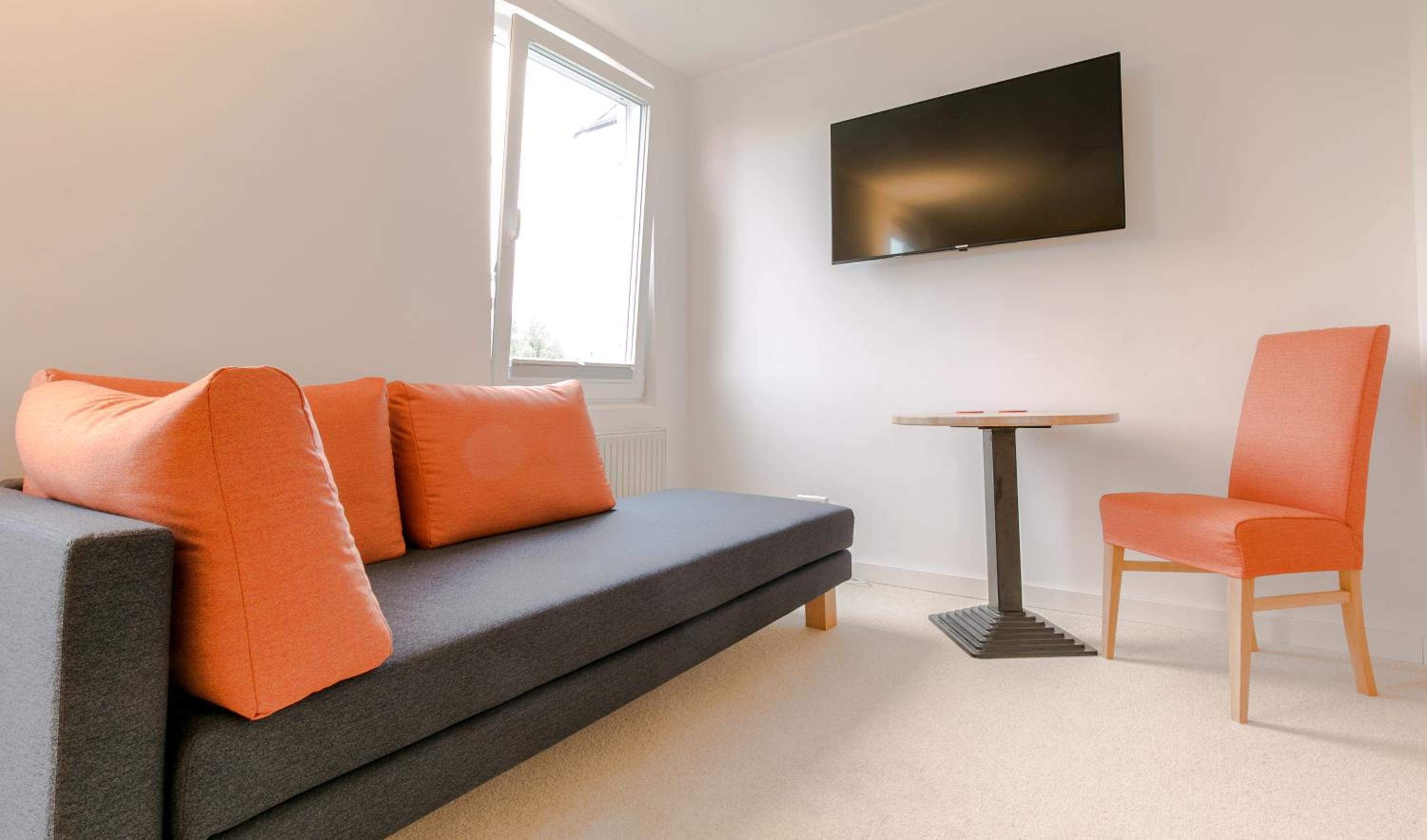 Comfortable Rooms: Each room is equipped with a flat-screen TV, a private bathroom, and cozy seating area, ensuring a relaxing stay for all guests.