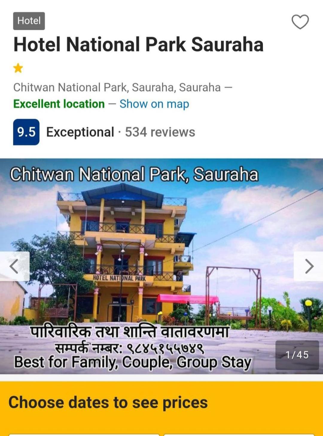 Wonderful stay at Hotel National Park. I immediately felt very welcomed and at home by Suraj and his family and staff. Everyone went out of their way to be kind and accommodating, and I felt like they always anticipated my needs before I even said anything! Suraj was super helpful in organizing multiple excursions in the National Park with really knowledgable and friendly local guides. The rooms are clean, comfortable, and well maintained. There’s nice outdoor space to sit, lots of shared balcony space, and a great on site restaurant. The hotel is only a 10-15 minute walk into town which was perfect for me as it was nice to have peace and quiet but still easily access the town. Overall a great stay that I can highly recommend to anyone visiting Chitwan.