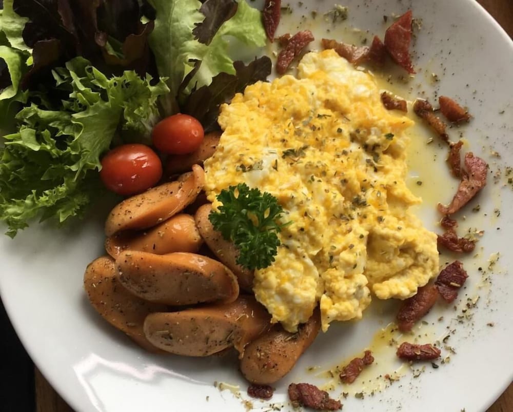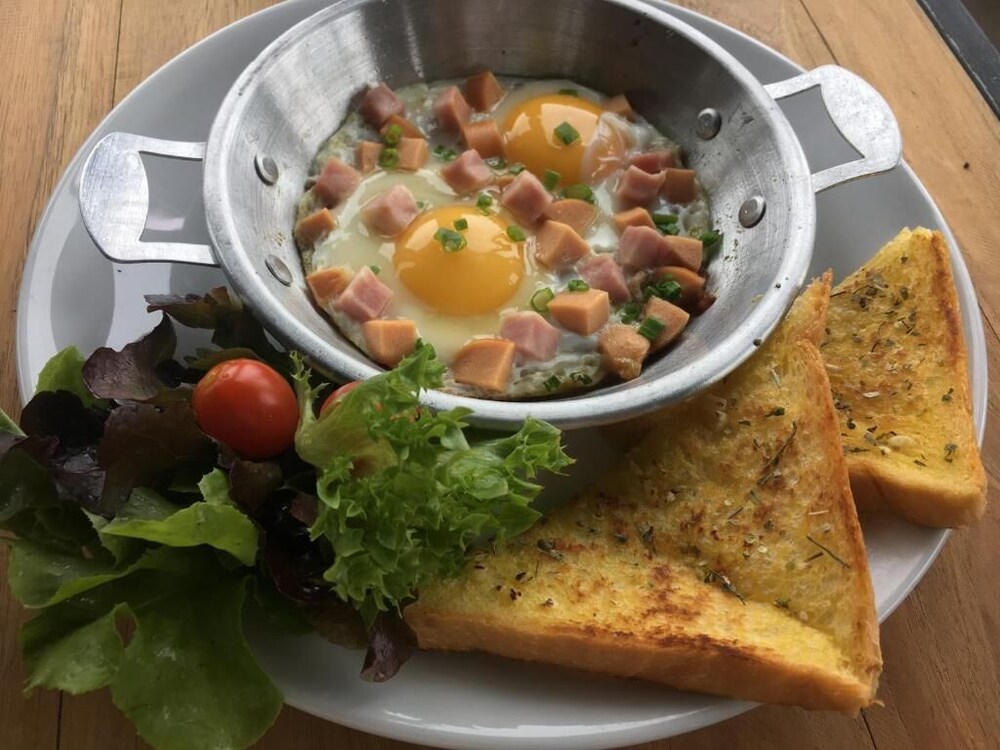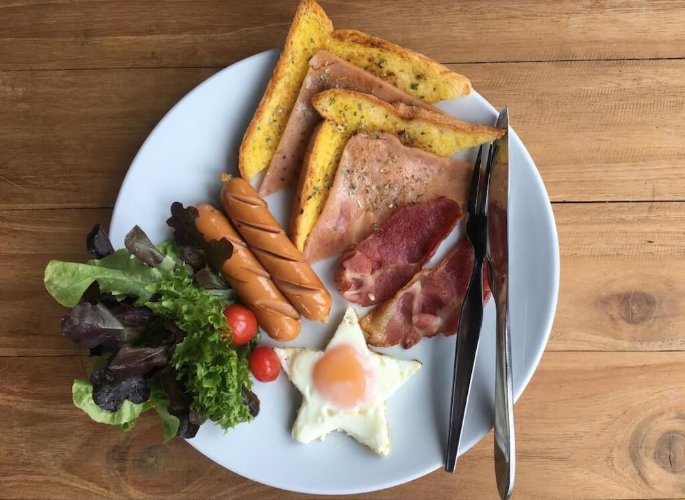 The American breakfast was awesome. Two fried eggs, bacon, Frankfurt, lettuce and tomato. With 2 slices of toast, all for AUD $3.
