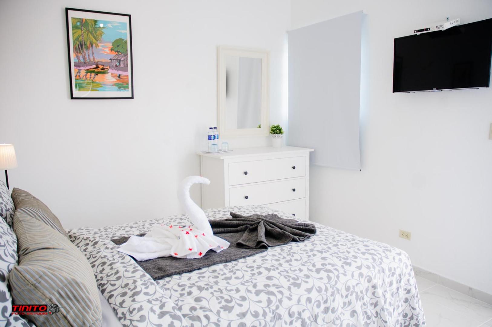 Muy lindo hotel, excelente ubicación en Boca Chica, muy cerca de la playa. Hotel limpio, seguro y tranquilo, con piscina y jacuzzi. El restaurante ofrece muy ricos desayunos variados. La dueña muy amablemente nos cambió por una habitación más grande al mismo costo. Eli en recepción atenta y amable. Lo recomiendo! Gracias a todo el personal del hotel