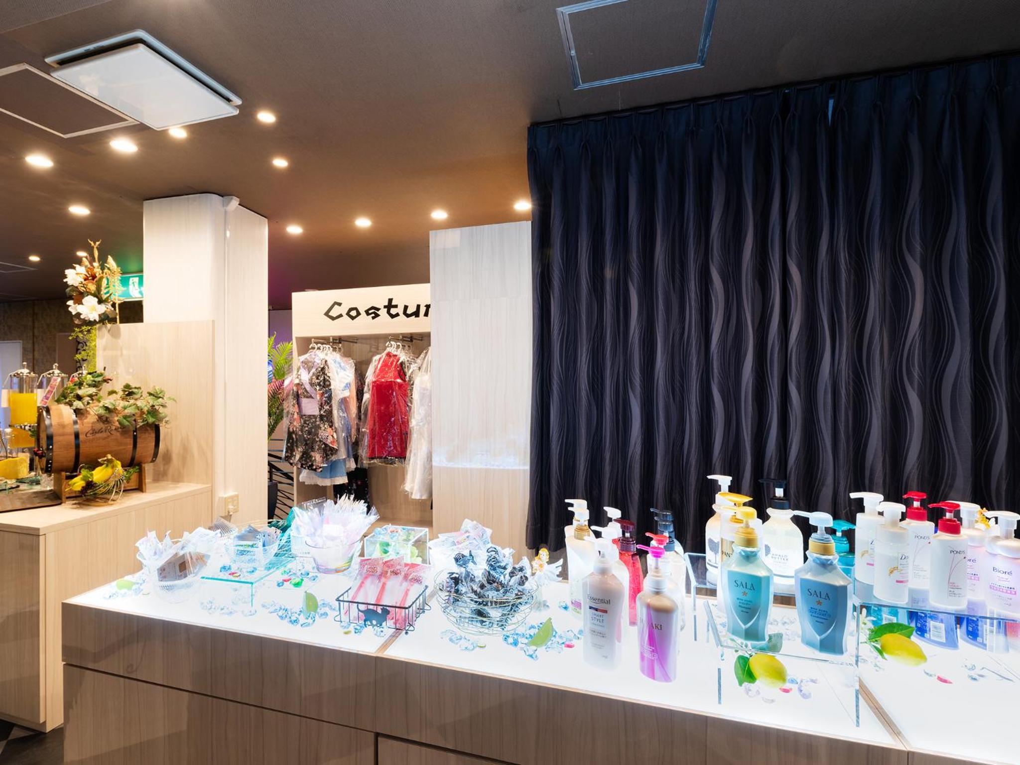 Staff service was excellent. Free ice cream and drinks at reception. Wide selection of skin care and hair hair products in the room. Microwave and fridge. Family mart across the road.