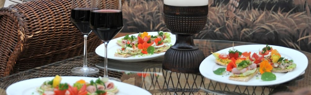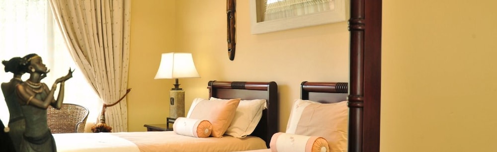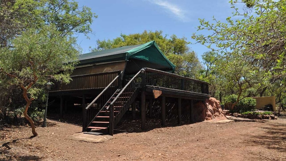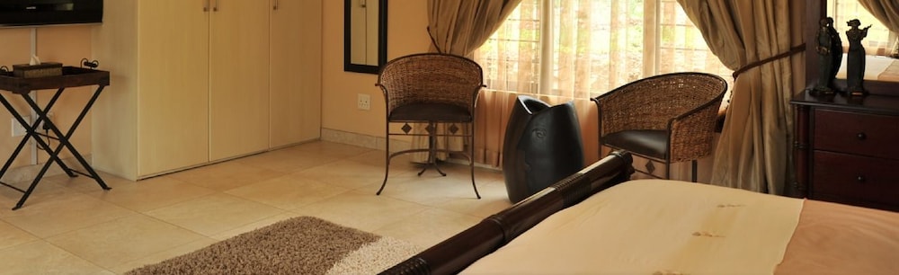 The hotel has a small number of rooms sharing a bathroom plus chalets with en-suite accommodation and some further chalets away from the complex and in the bush where zebra and impala are a regular sight. It is off the beaten track so a car is essential and there are no other restaurants apart from the hotel's nearby. The staff are attentive and eager to please and we were thoroughly looked after. There is a reasonable sized swimming pool on site.