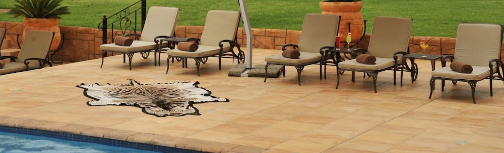 Enjoy the outdoor pool and terrace with garden views at Legodimo Game Lodge for a relaxing stay.