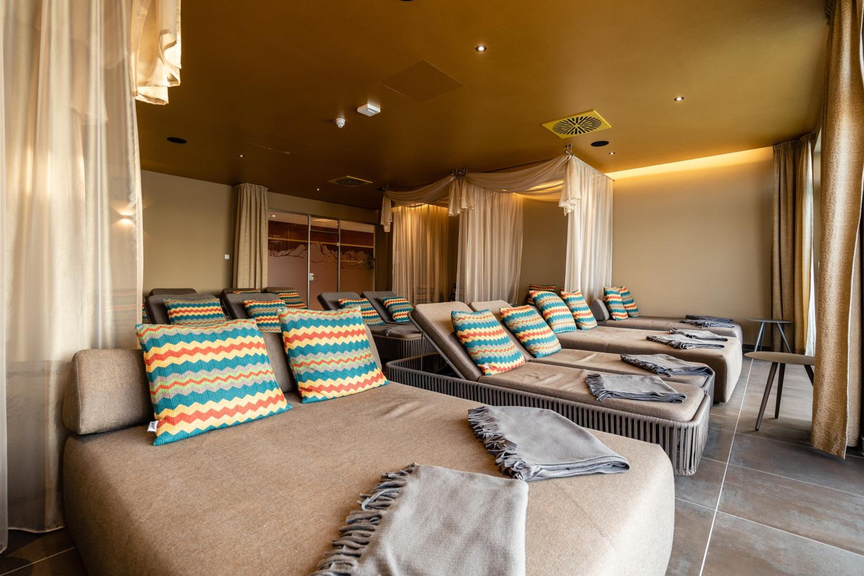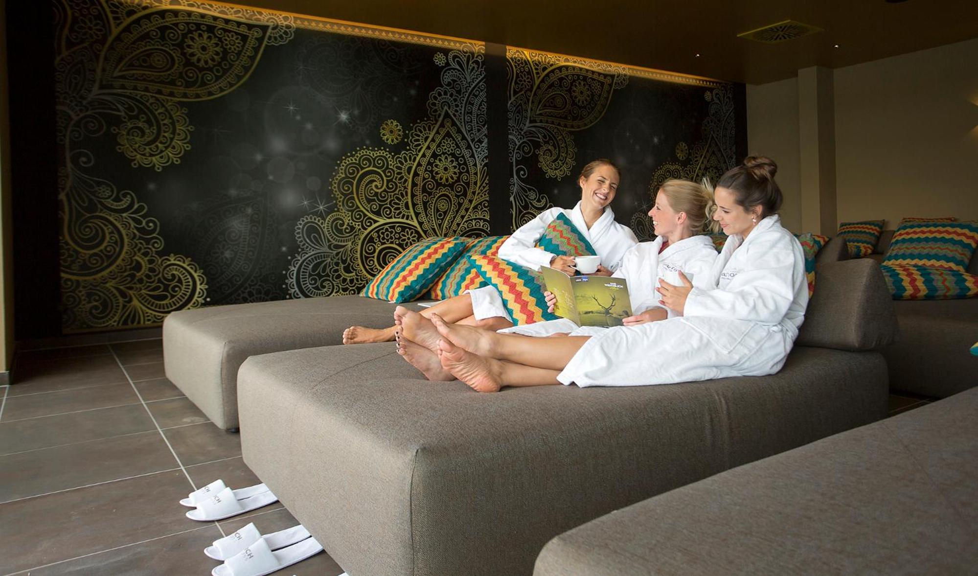 Toller Ausblick, Toller Spa-Bereich mit extrem vielen Liegen, Tee-Station, Panorama Saunen