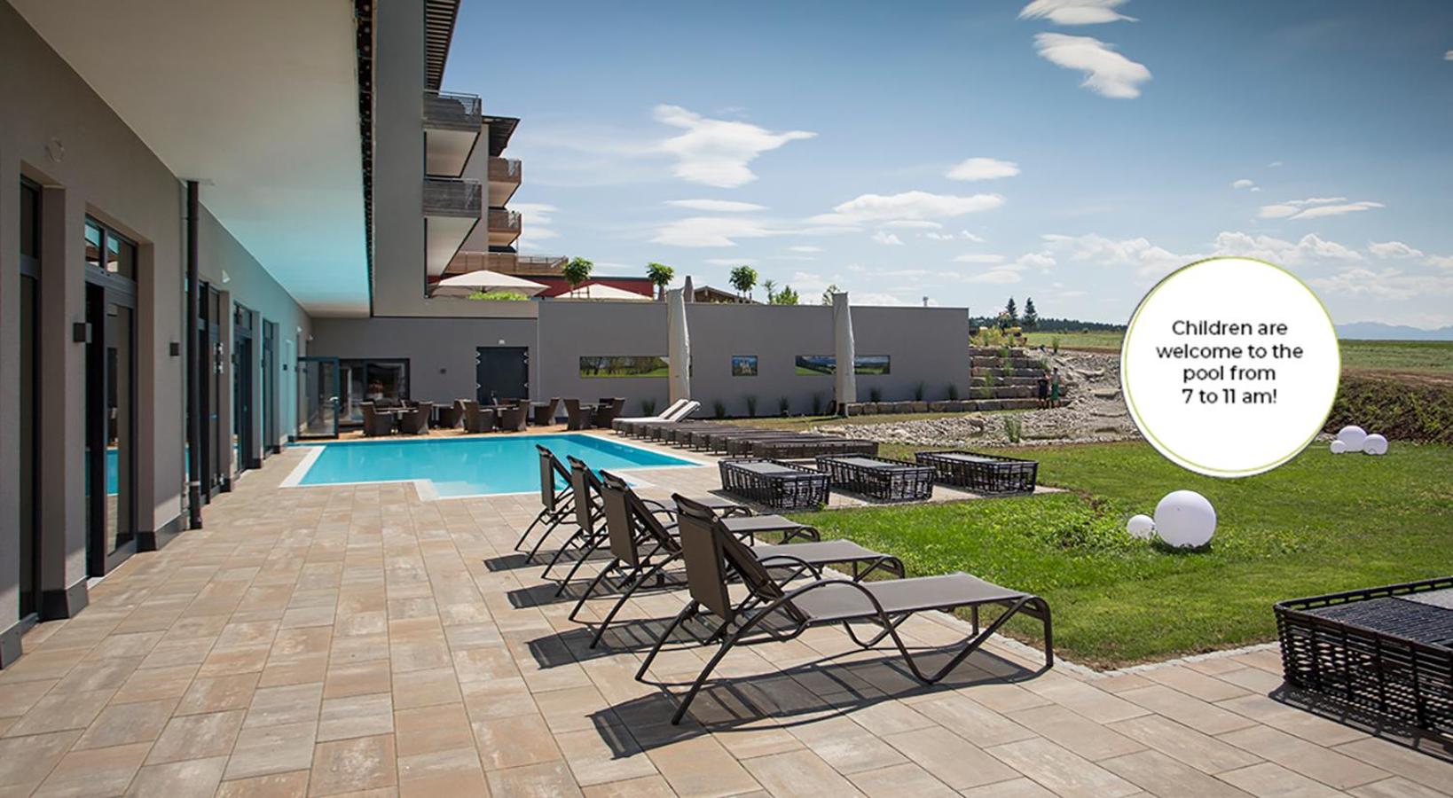 Das Äußere des Hotels ist nicht so gelungen und sieht ein bisschen „billig“ aus, aber wenn man das Gebäude betritt ist alles sehr geschmackvoll. Der Ort Marktoberdorf ist etwas enttäuschend. Und zu unserer gebuchten Zeit wurde den gesamten Tag ab 8 h an Matten gekärchert. Das hätte man vielleicht geschickter organisieren können.