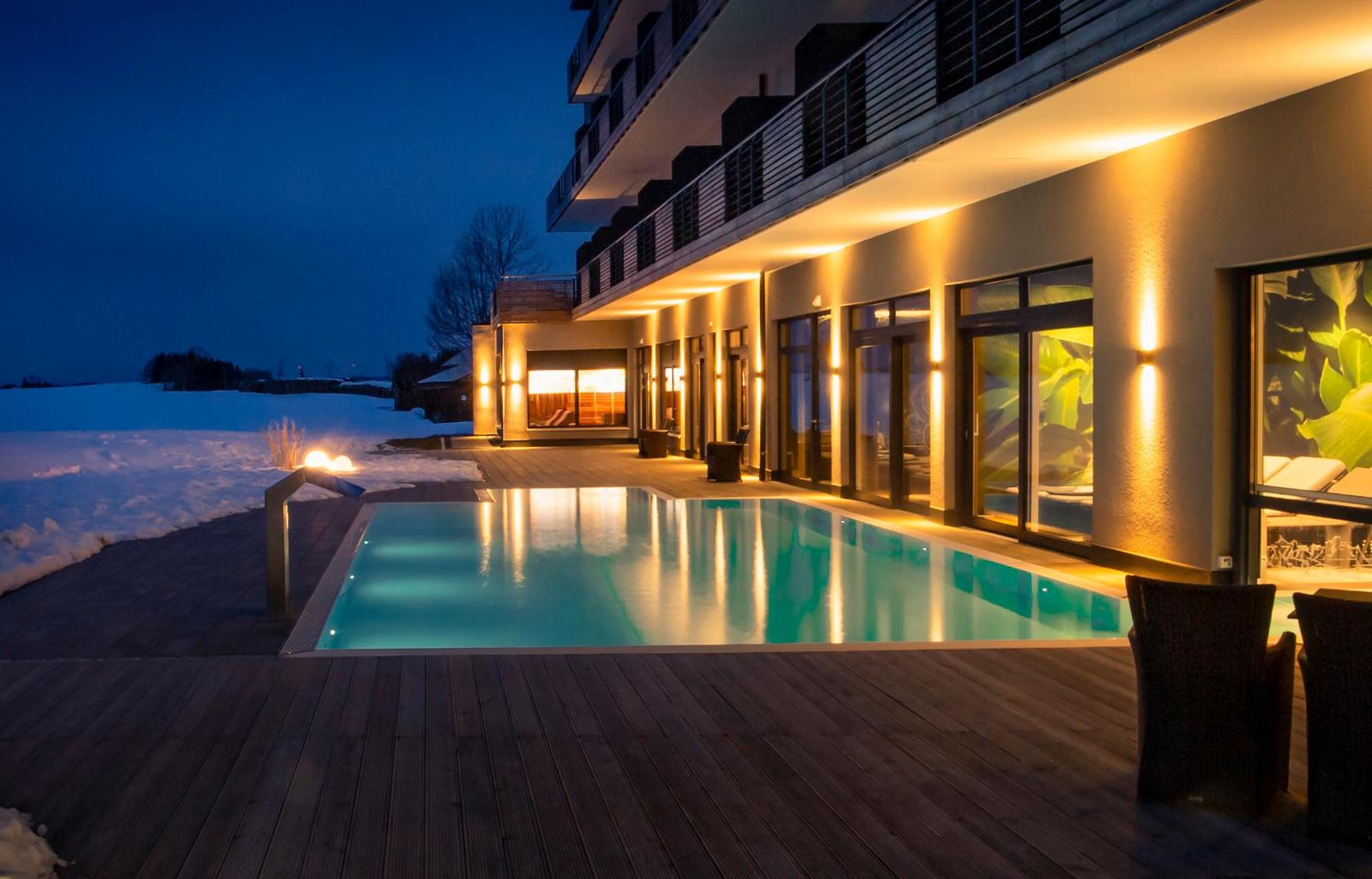 Schönes modernes Hotel mit tollen Spabereich. Besonders gefallen hat uns der Außenpool. Vom Zimmer hat man einen schönen Ausblick und es ist gemütlich eingerichtet. Das Hotel legt viel Wert auf nachhaltige, regionale Produkte und bietet auch einiges an Veganer Auswahl beim Frühstück. Für 1 Nacht wirklich toll.