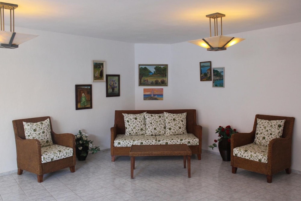 Stayed here for nearly two weeks. Small family owned hotel in an excellent location in a small bay, hotel is right on the beach. Lovely rooms/bathrooms. Varied menu and reasonably priced. Owners on site all the time, very friendly. Hope to return next year.