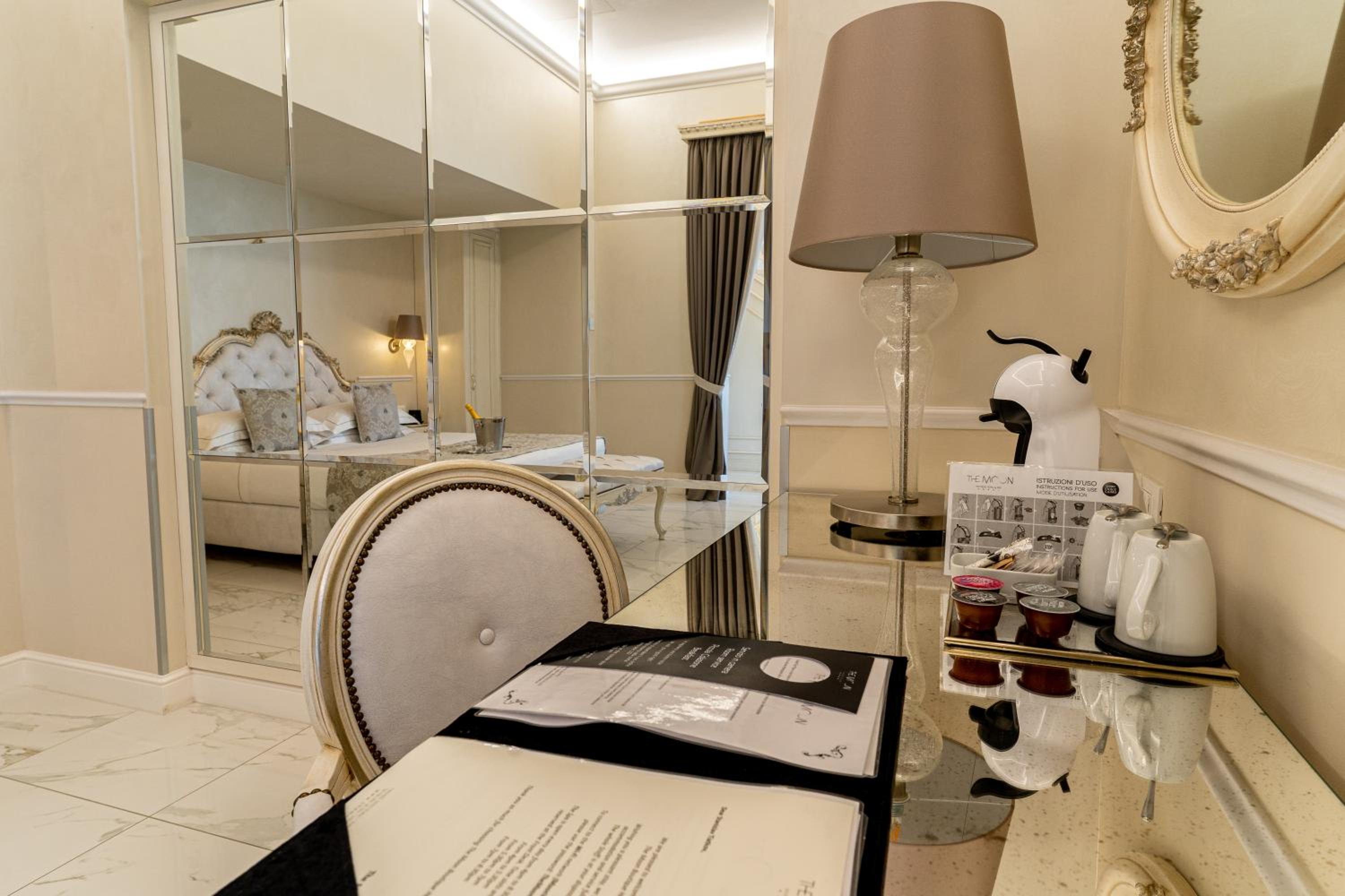 Indulge in the ultimate comfort at The Moon Boutique Hotel & Spa in Florence. Each air-conditioned room is equipped with a Smart TV and a coffee maker, with the option of upgrading to a room with a spa bath or private sauna for a truly lavish experience.