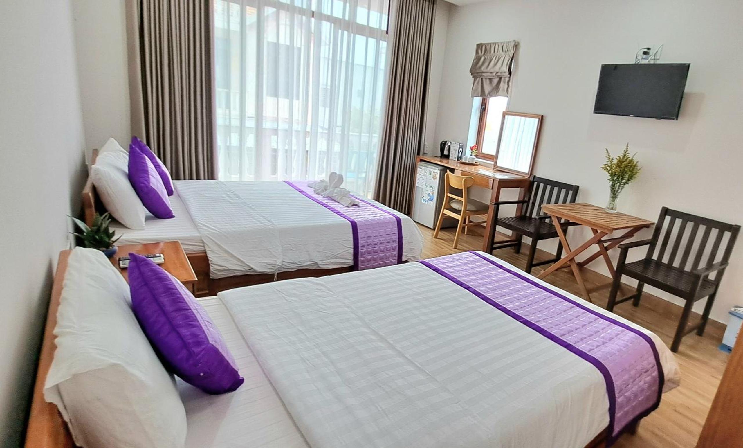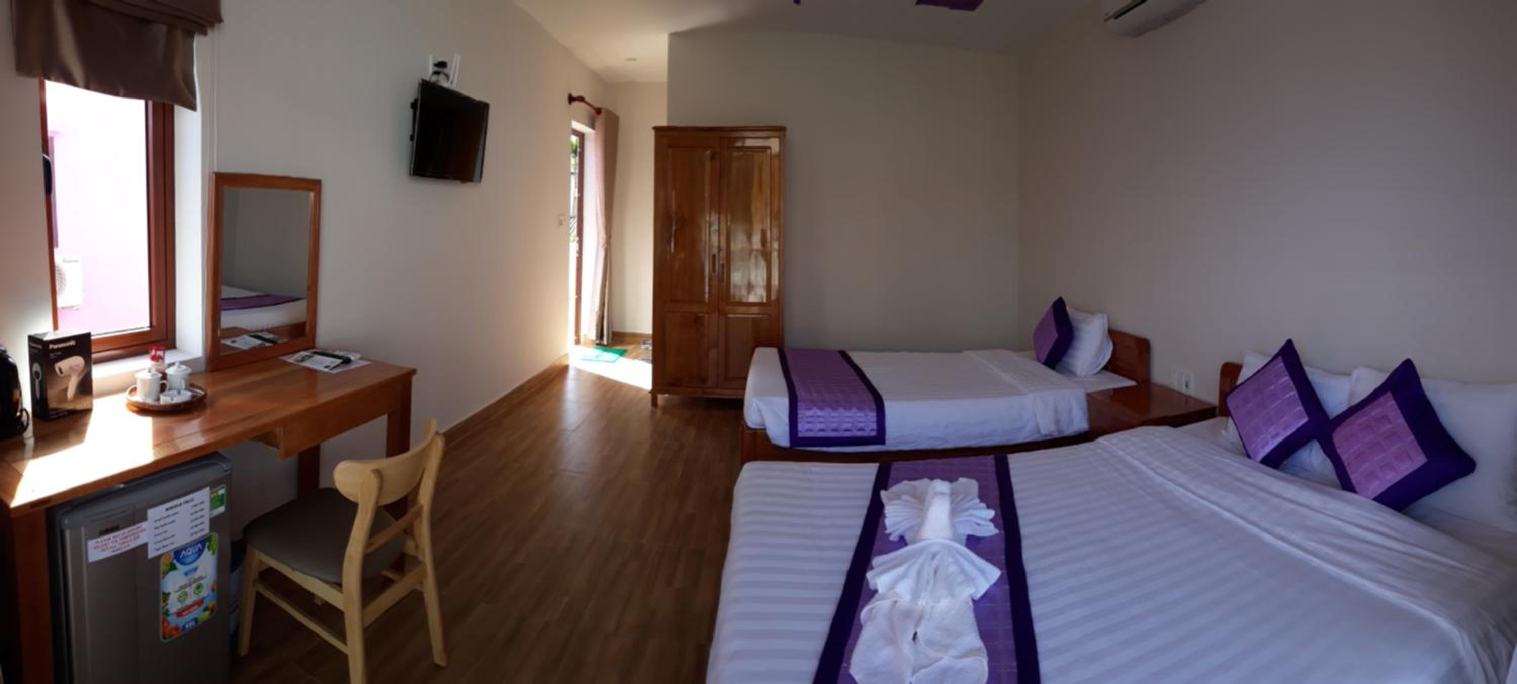 The owner, Tri, is the most friendly helpful lady: she welcomed us with a drink and fruit and told us about the local area, and continued to help us and look after us throughout our stay -we felt very much 'at home'. Our room was immaculately clean and was cleaned each day. Big comfy bed in a spacious room. Free bikes were useful for getting around, into town, up to the beach, and taking a beautiful trip through the nearby rice paddies where we had coffee - stunning!