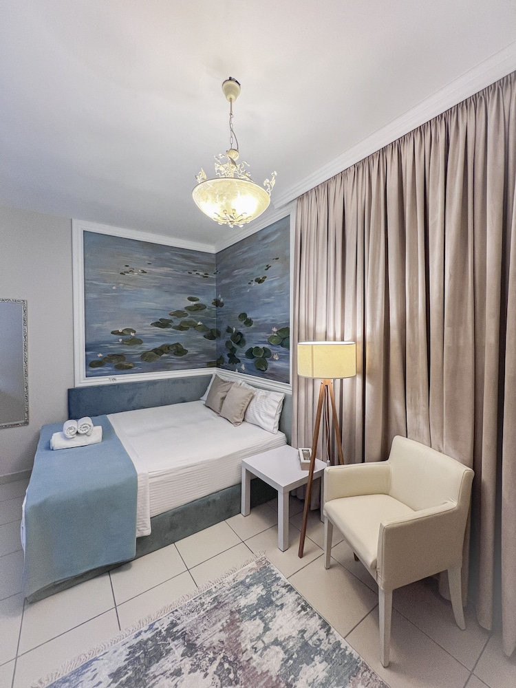 S ubytováním, stravováním i s celým hotelovým servisem jsme byli nad míru spokojeni, personál byl velmi vstřícný, pokojová služba perfektní, poloha hotelu ideální - mimo rušné noční ulice centra, v blízkosti obchodu, ale ne daleko od moře. Perfektní je možnost parkování ve dvoře a bazén s průzračně čistou vodou, obklopený polohovacími lehátky a s obsluhou z hotelového baru.