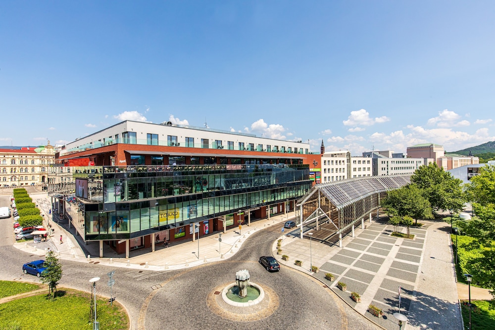 We had a 2 days stay for 3 people and 1 infant . The apartment is huge nad can easily accomodate 6 adults . Having 2 bathrooms is really convenient . Ideally located in the Fontana mall , everything in teplice is walking distance and you have all you need for shopping in the building. You can visit the wellness center which is 1 floor down and is pretty decent . Parking on the underground of the mall . Communication was really effective , polite and proffesional . Apatment was clean , only thing that can be better , is to make painting in the walls . Nice gift on the check in , it was highly appreciated . The price is reasonable for 4 people . Overall we recommend this property for a stay in the heart of Teplice .