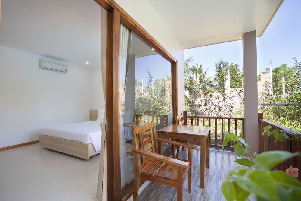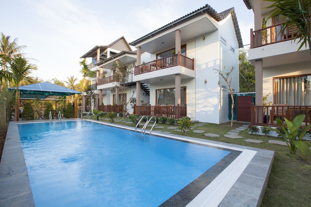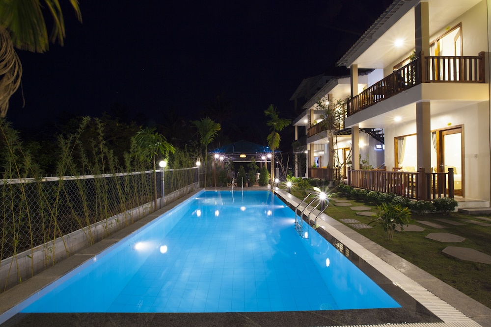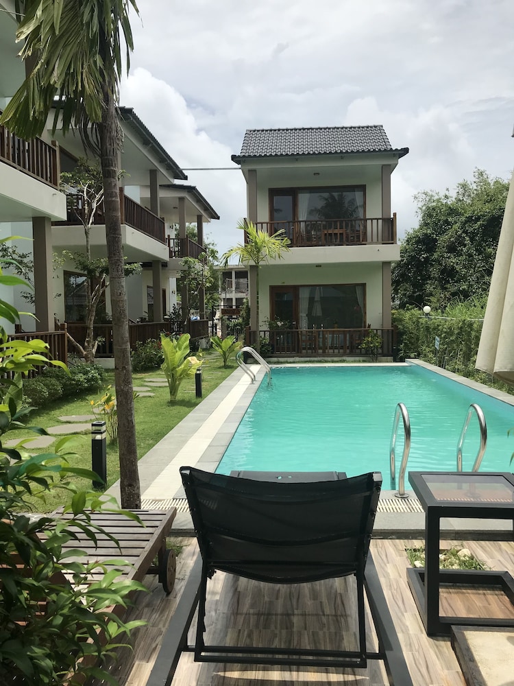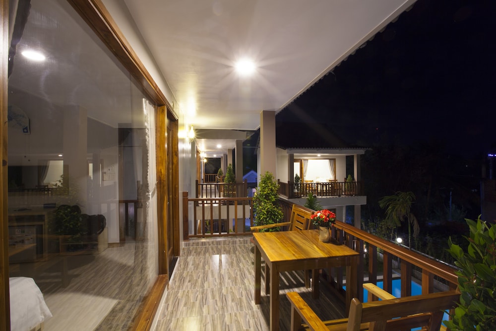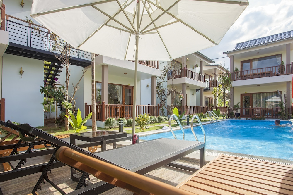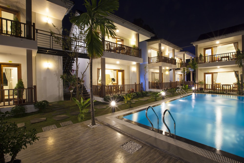Communication a bit complicated because of not really good English (nor other language except chinese), but friendly staff and helpful. Room was not serviced during my 2 nights stay. Very good value but be aware that they charge for everything : minibar, of course, but also coffee, tea bag,... Though very reasonable price : 10.000 vnd a large bottle of water equivalent 0,45 usd. Our party rent scooters from hotel. Very very convenient, good price, rather good quality and very fun. Consider the rental as hotel is a bit remote from downtown. Beautiful swimming pool and nice big rooms located all around.