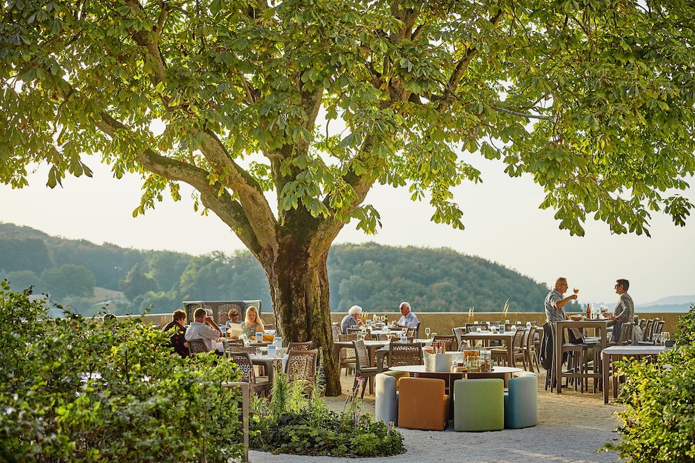 Stayed 4days/3 nights.Took some getting used to. 1st flr reception&restaurant are modern, but the rest was more medical than 'spa'. Not what we were expecting, so took time to appreciate. Rooms-simple, spacious,comfortable&very clean. Furniture in great shape. Bathroom had window to room reducing privacy. BUT you see balcony view, so appreciated the decision. We paid extra for valleyview & it didn't disappoint! Altho a little loud at times w/tractors,cows&cars, but it was gorgeous &every sunset was different! Even saw fireworks in southern France on Bastille Day.Nice sized balcony w/little table/chair set. Altho would welcome lounge chairs.Friendly, helpful staff.Breakfast buffet had many choices but didn't change from day to day. No usual Euro veggies or sweet pastries,but had breads,jogurts,eggs,bacon,etc. Awesome coffee machine!Our massages were decent.The pool's water was perfect.Sitting area around pool was small & antiquated but said they are to rehab.Little touches like nuts/dried fruit & bottles of their water everywhere for their guests:) Had walking paths to towns, but unfort towns didn't have much & many restaurants were closed.What bothered us MOST was 1-ripped,old furniture covered w/blankets in halls gave nursing home feel 2-no place to relax outside of room. Outdoor area had uncomfortable beach slings NO one sat in. Remove old hall chairs & add outdoor couches,firetables&flowers wouldn't cost much but would totally enhance & create more of a spa experience.
