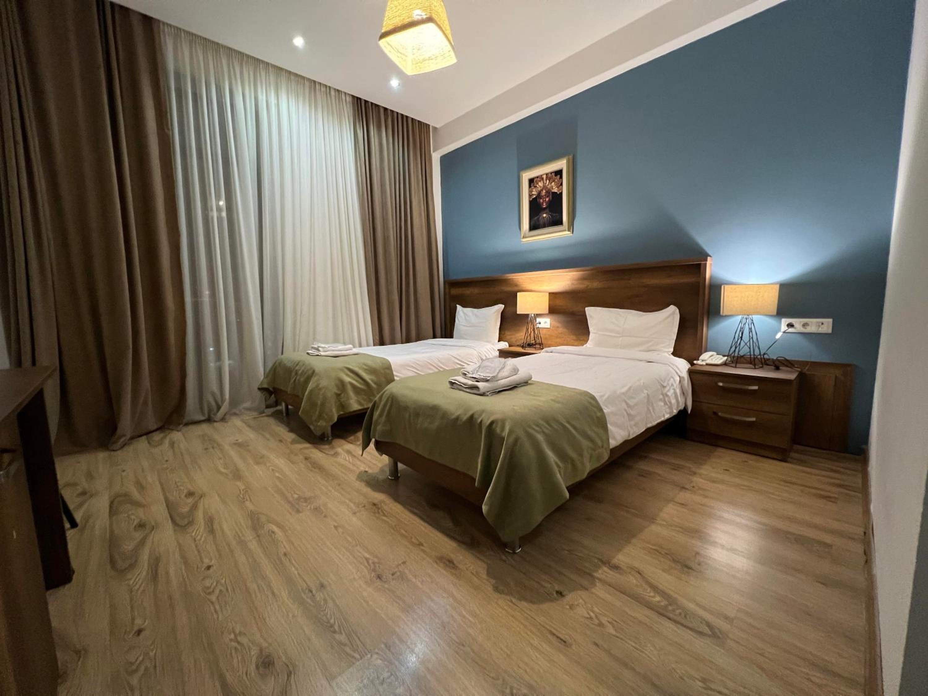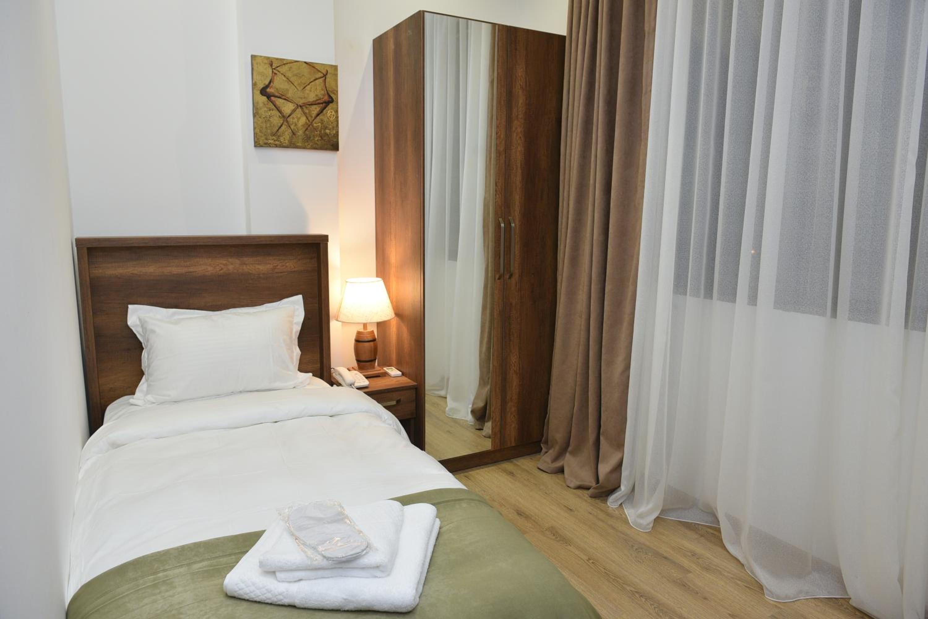 История такая. Мы зарегестрировались в отеле из за расположения и самое главное вид из окна, но по приезду в Грузию, нам позвонили и сказали, что отель закрыт и направили нас в другой отель, по расположению он возможно и был ближе( со слов работника) но местонахождение этого отеля даже таксист не сразу нашел, обещали трансфер но так и не предоставили, номер был просто микроскопический, на полтора человека. Работал только кондиционер, было довольно холодно а в ванной так совсем холодно. Больше не поедем в этот отель.