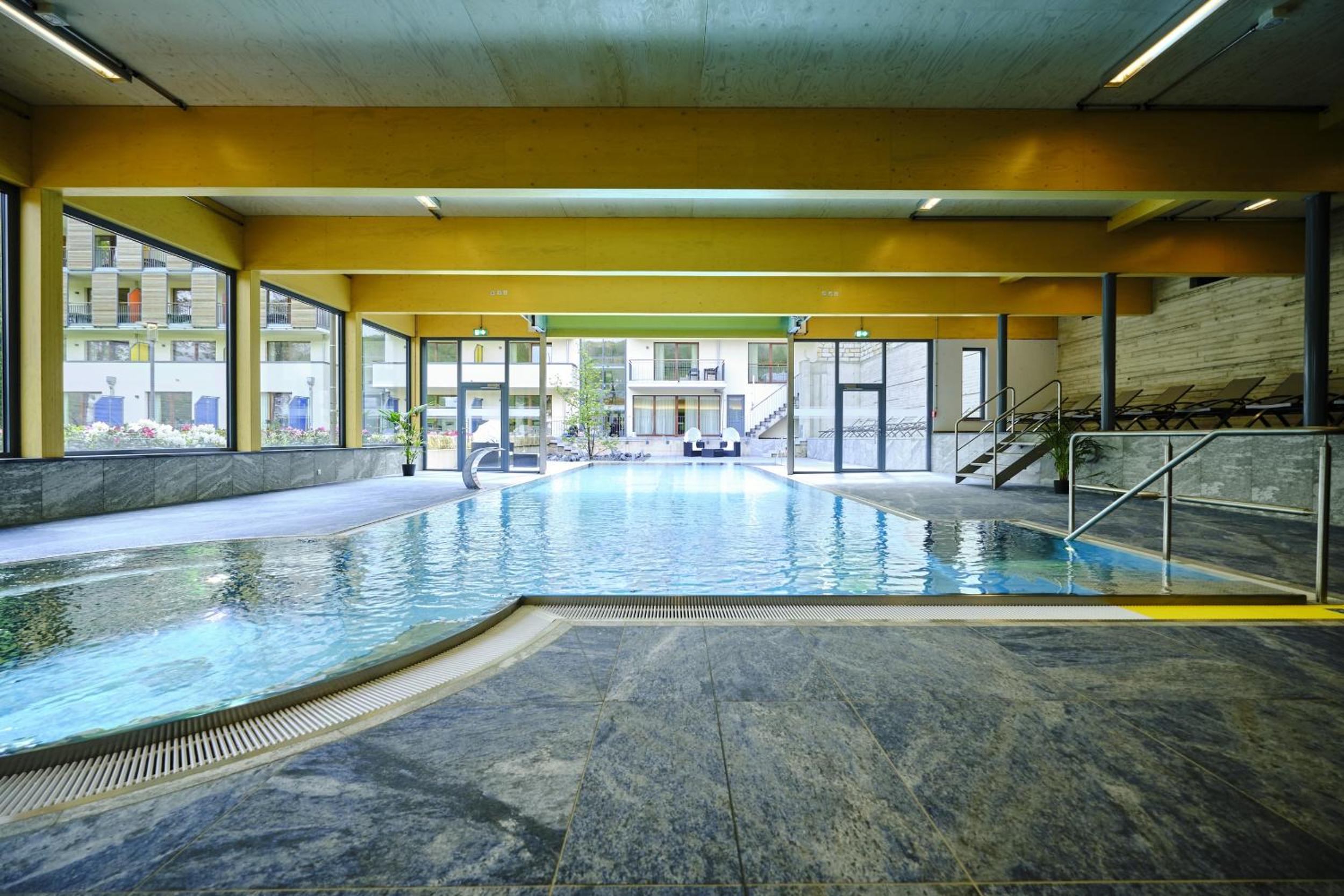 Unwind in the light-flooded spa area with an indoor/outdoor pool, massages, and beauty treatments. After a rejuvenating spa session, explore the picturesque surroundings perfect for hiking enthusiasts.