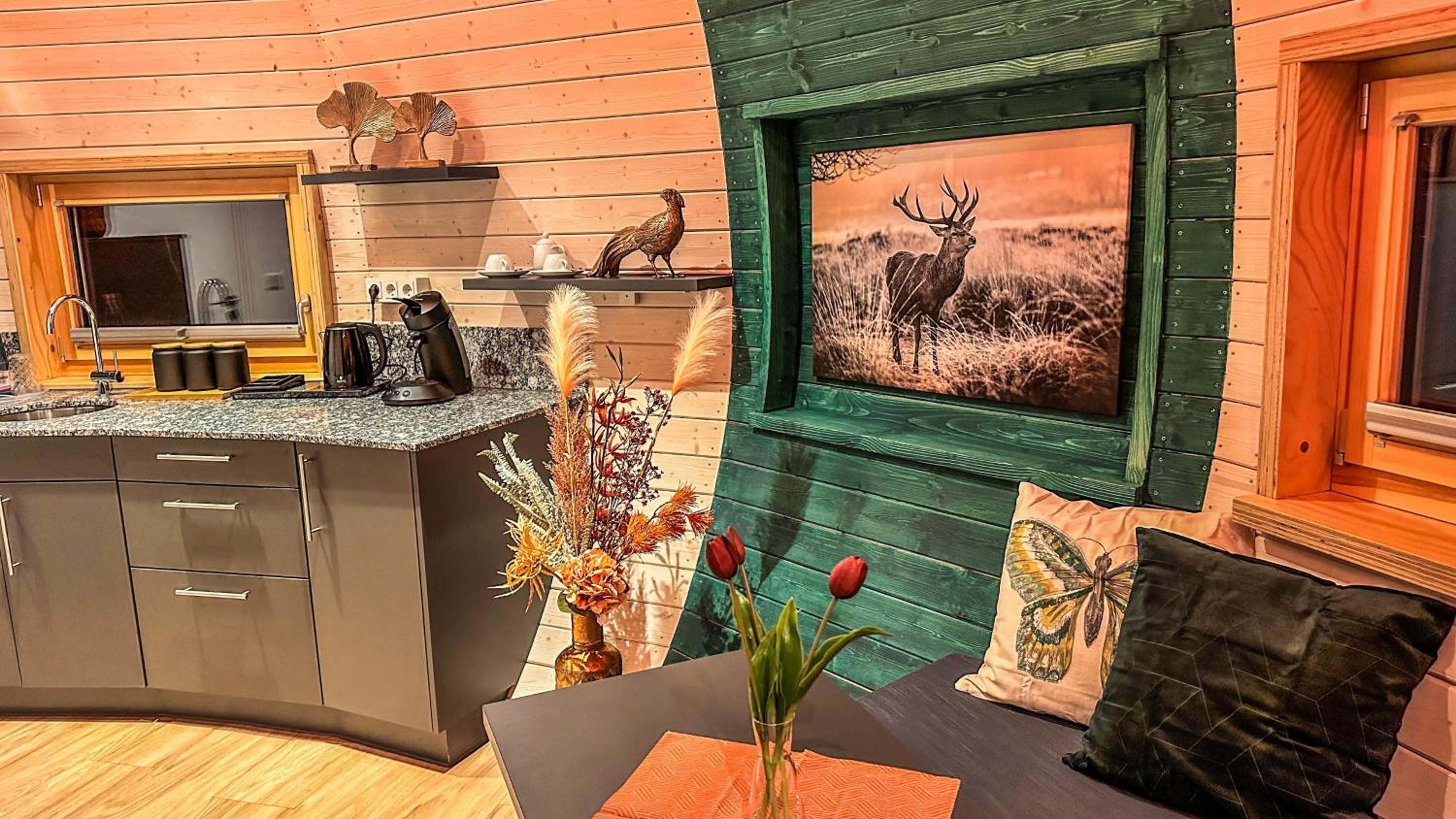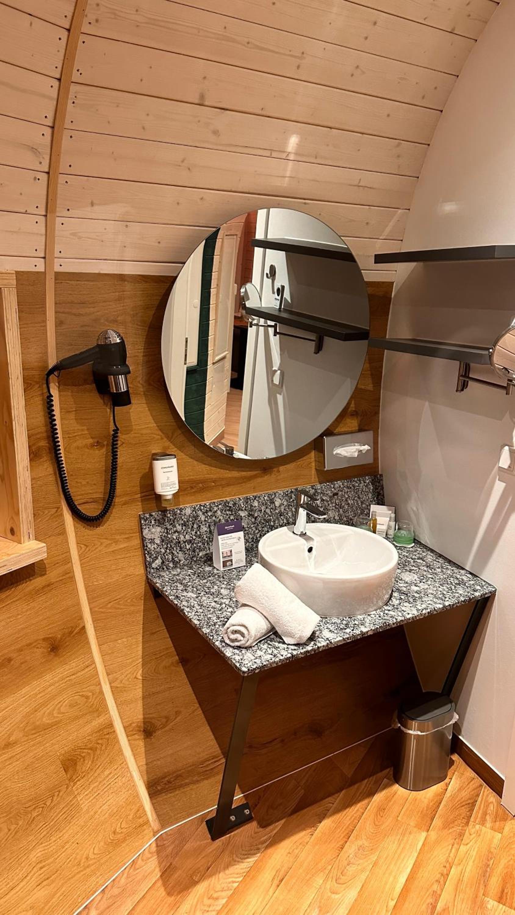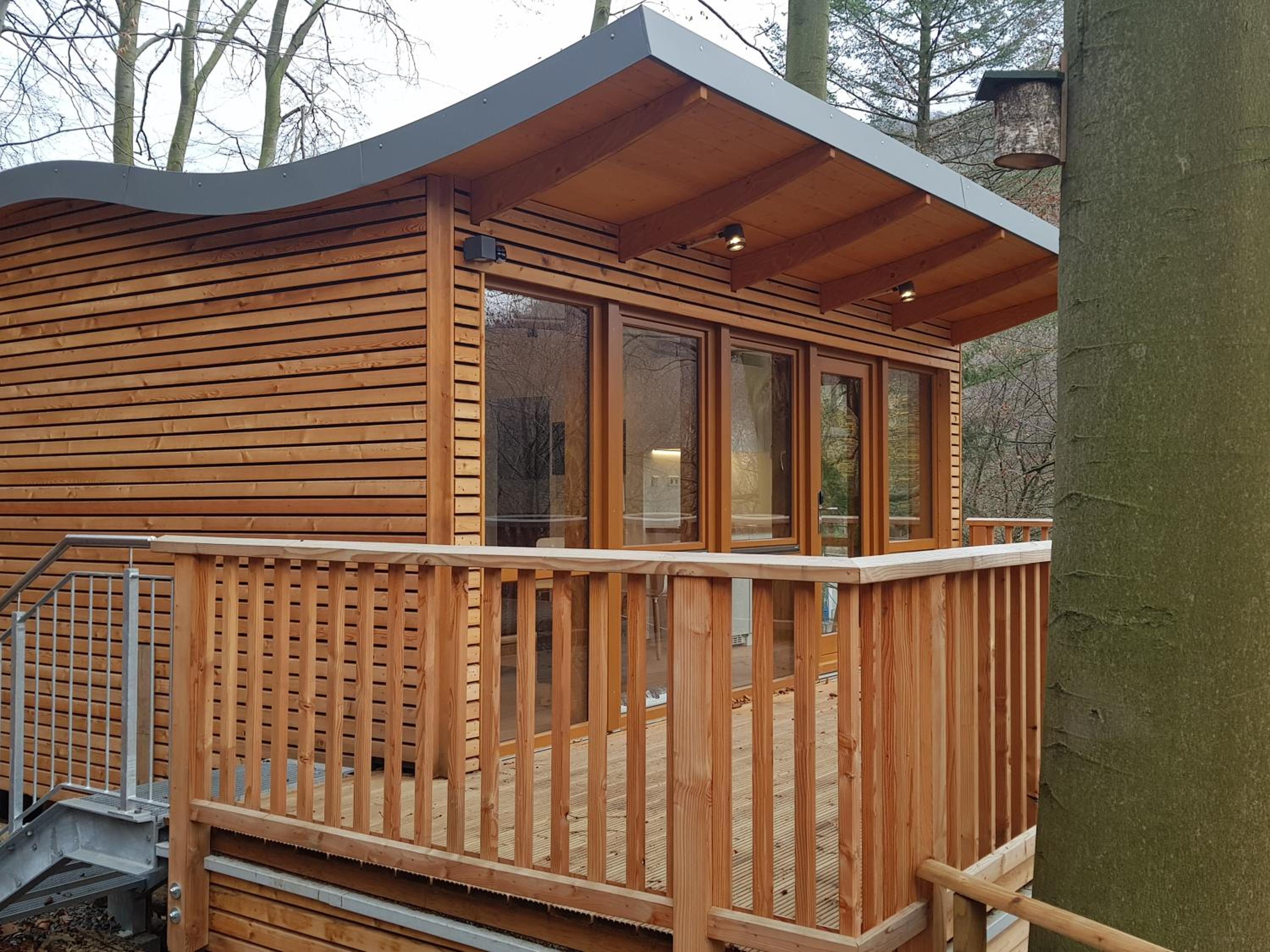 Im Baumhaus hinter der Schiebetür im Bad wurde offenbar länger nicht gereinigt, das Wasser im Waschbecken lief sehr langsam ab, 2 Steckdosen ohne Funktion.