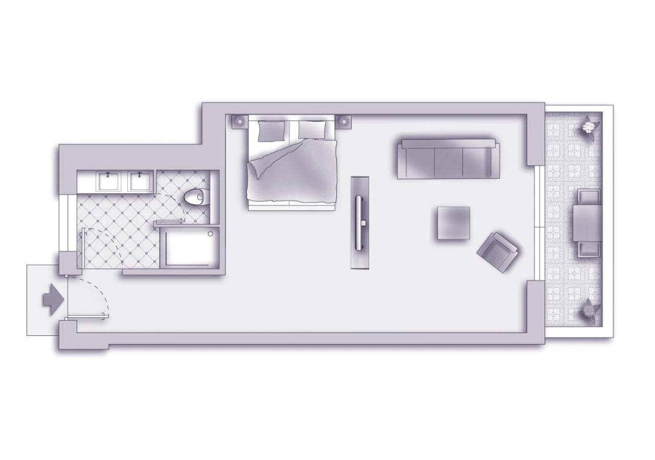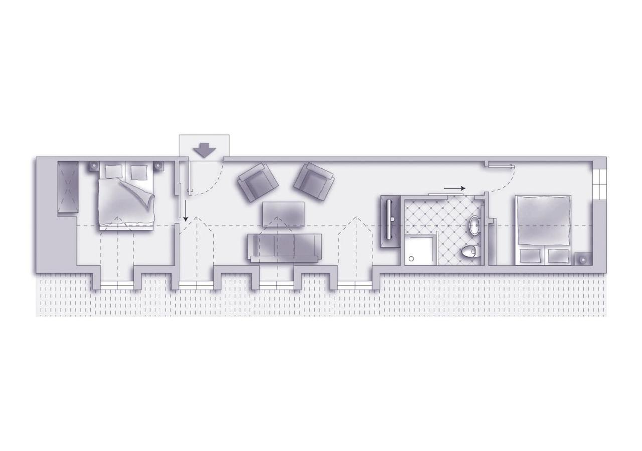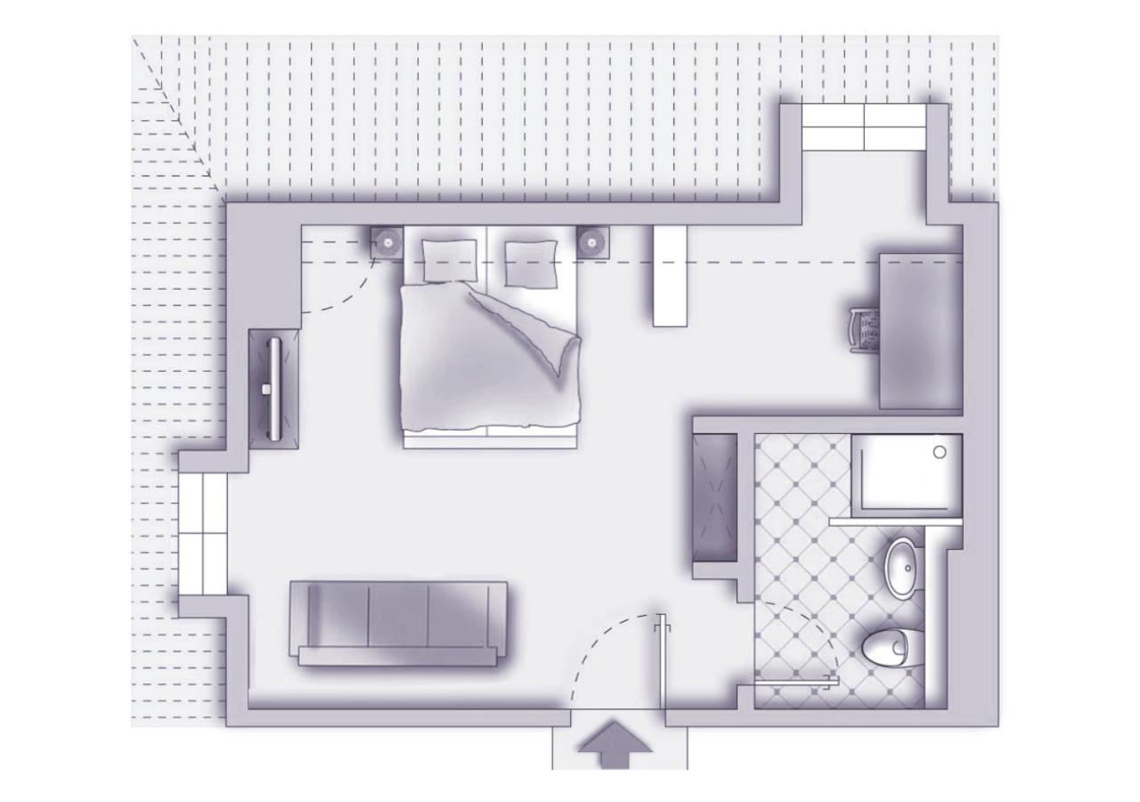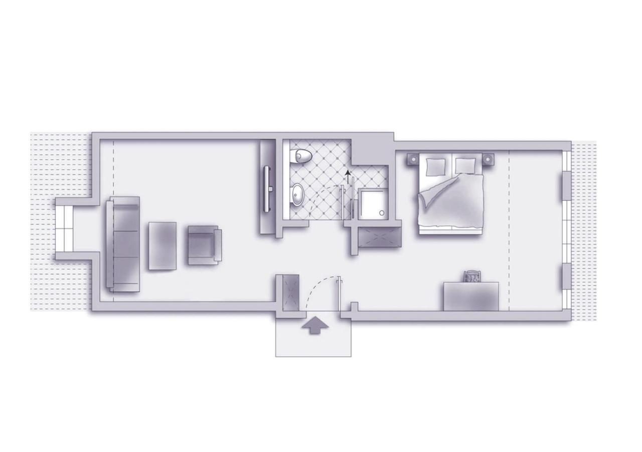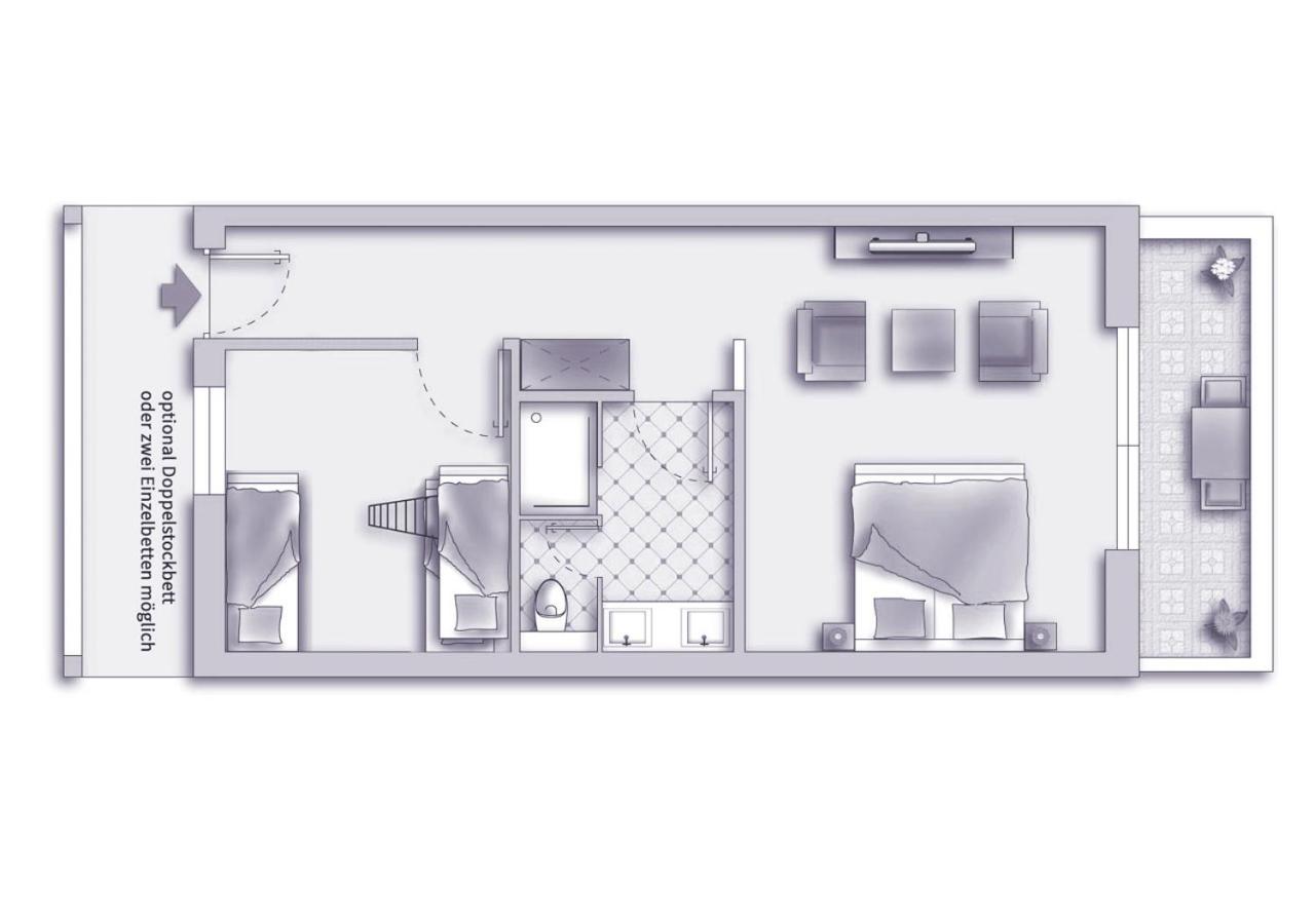 Mit raffinierten Raumteiler zum Fernsehen, beidseitig nutzbar. Schöner und guter Wellnessbereich, der leicht erreichbar war. Pool ausreichend groß und sehr sauber.