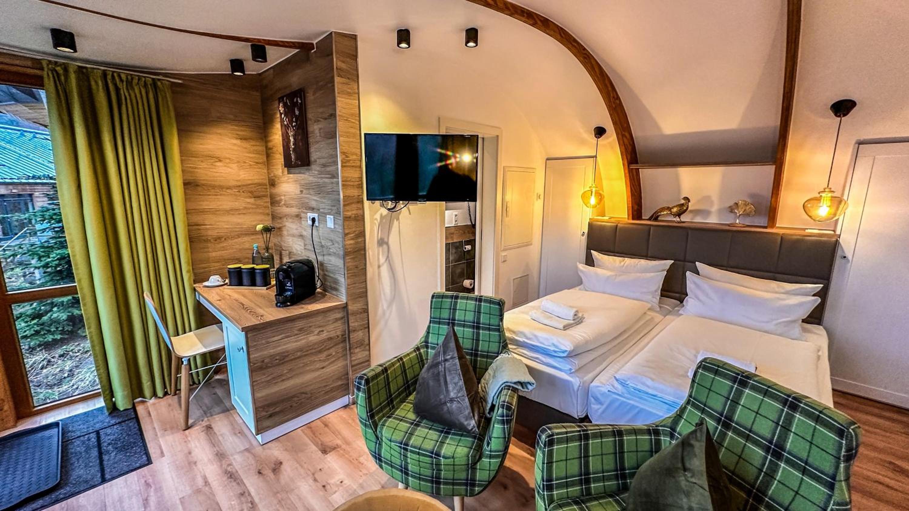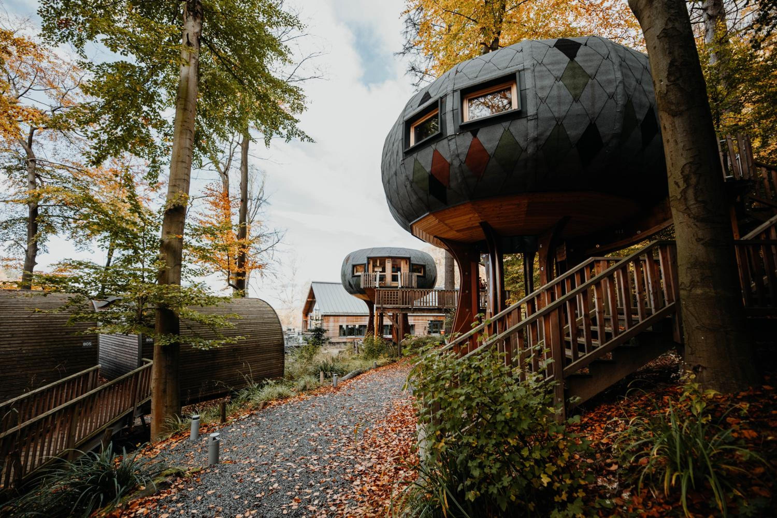Sonnenresort Ettershaus offers a range of unique lodging choices including rooms, suites, and futuristic treehouses. Each unit is equipped with modern amenities like a flat-screen TV and a private bathroom, with some featuring a balcony or terrace for stunning views.