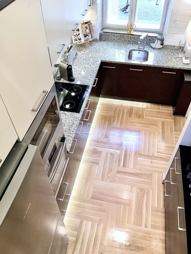AWESOME find in the heart of Warsaw! Extremely rare to find something with this much space in Europe. Not only that but it was in the HEART of old town square AND the windows prevented any noise from the square (that was NOT the case when we booked a place in Belgium's main square where all noise could easly be heard). Amenities are ALL very modern. Extremely clean. Can't get more convenient than this location. Highly recommended.
