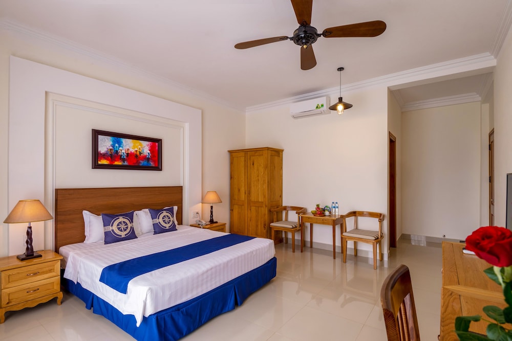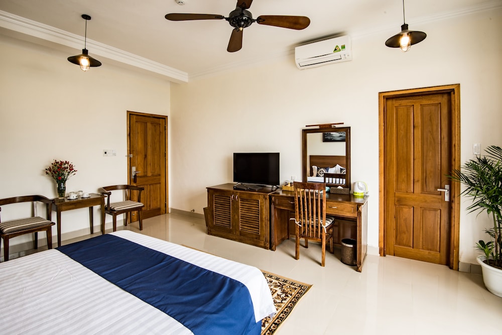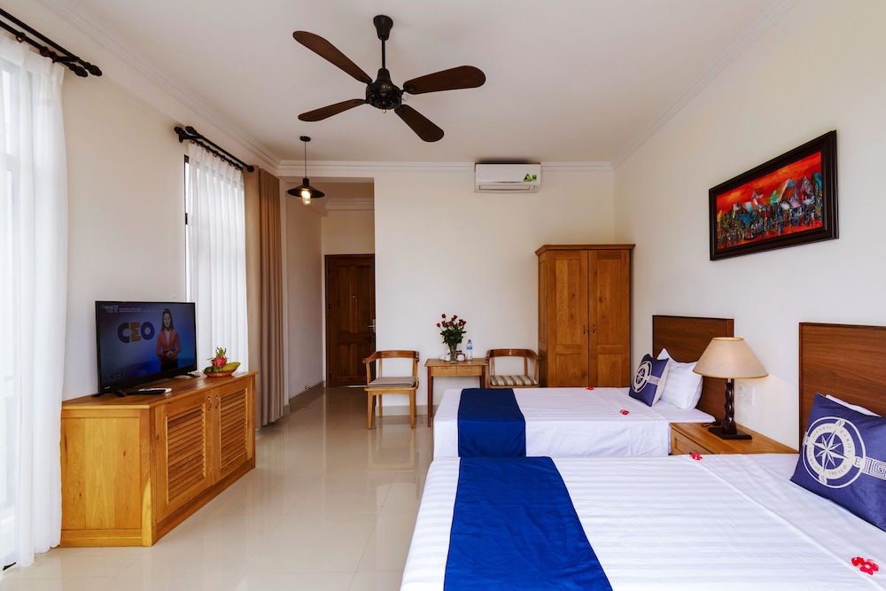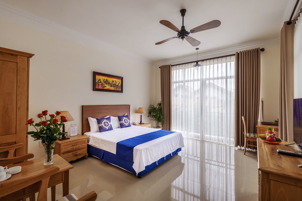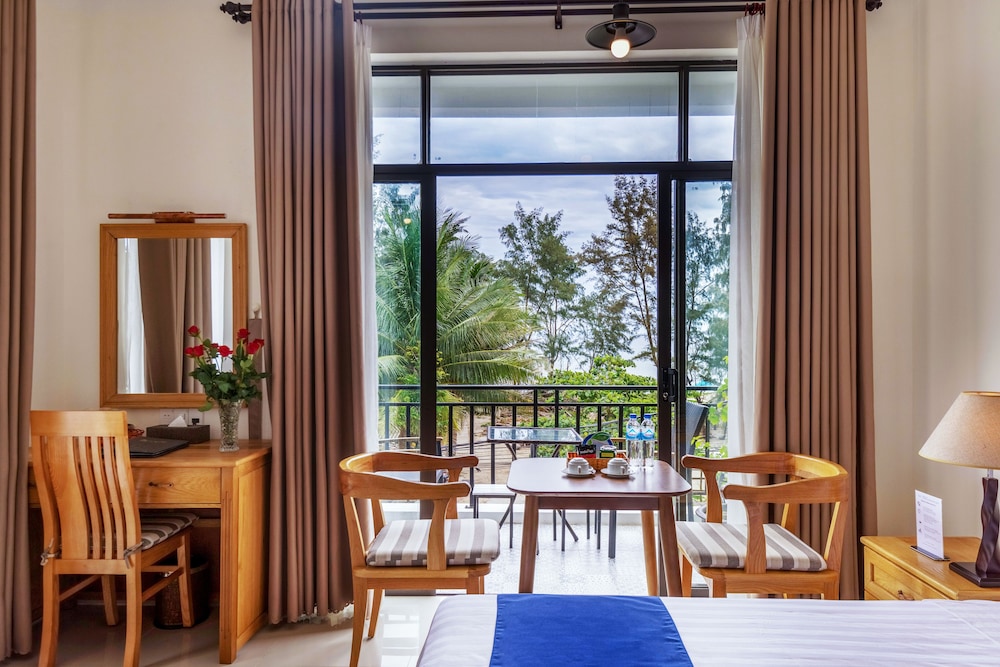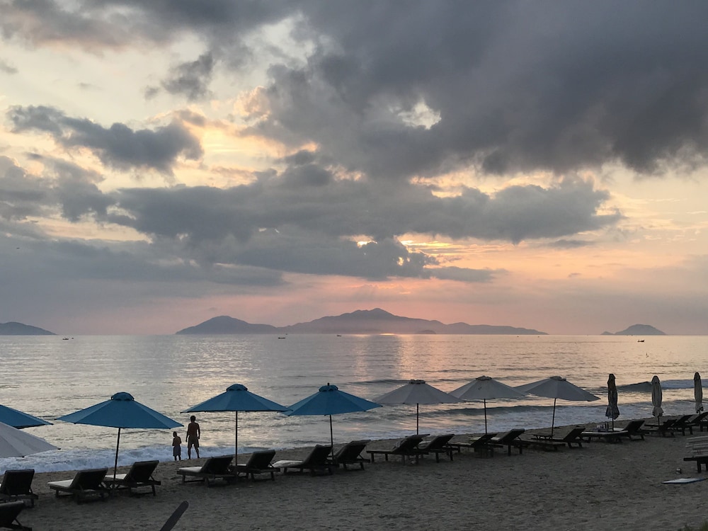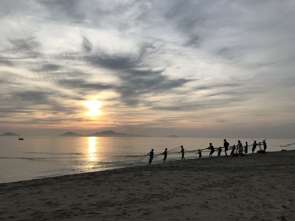 l’hôtel est très bien placé en bord de plage, au calme. Des restaurants à proximité et la plage de An Bang accessible à pied.