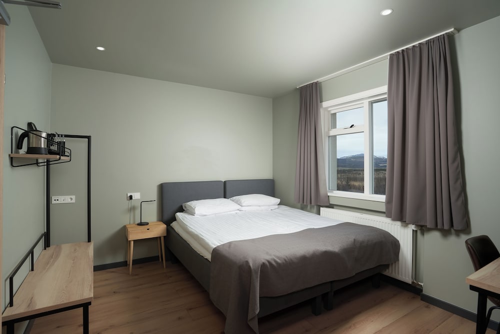Wonderful hotel. Perfect location with plenty of parking. This is the perfect halfway point to Akureryi. Rooms were very clean and comfortable. There also is a restaurant upstairs with a nice view. This is also where breakfast is which had a nice variety throughout the buffet. Staff was friendly as well. Thanks!