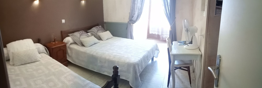 Hotel très calme;loin de la circulation.chambre triple spacieuse mais salle de bain un peu petite .Pas de rangement pour les affaires de toilette