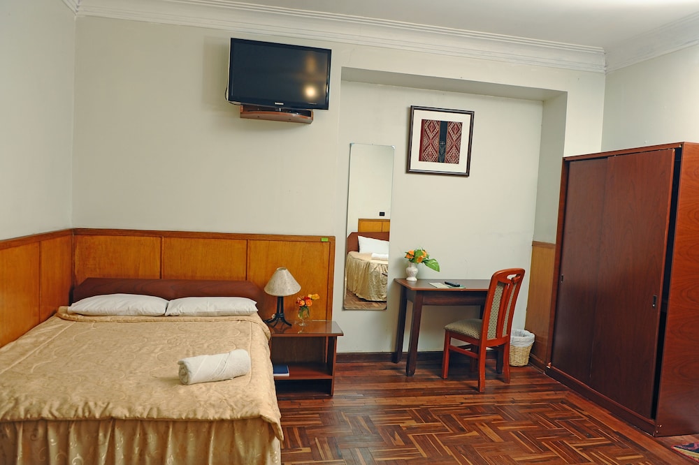 This is an older hotel run by a family. It is in the quieter area about 3 blocks from the Plaza de Armas. The rooms are quite small and the bathroom is also small and very basic. Our biggest concern was the lack of water pressure and that we had to wait for the warm water to run - sometimes with 10 minutes wait.