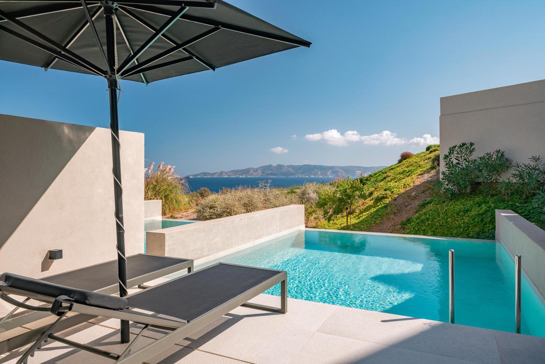 Guests can enjoy suites and villas with private pools or plunge pools, ensuring a relaxing and exclusive stay. The rooms are equipped with air conditioning, flat-screen TVs, and some feature a terrace for stunning views.