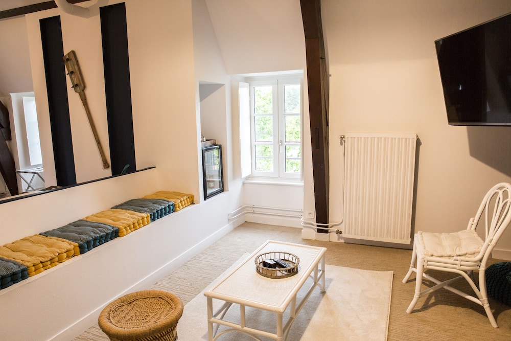 Wow!! a beautifully restored and maintained Manoir in Bretagne. Lovely wooded park, plent of space to get lost in a book, play yard games or just walk and take in the natural surroundings. Walk down to the lake/pond and look across at the other Manoir. The location is beautiful and also close to the neighboring Chateau de la Bretesche with its beautiful chateau, golf course and Michelin restaurant. Keep in mind — Sobriete Electromagnetique — it means no electromagnetic waves. All computer connections are through ethernet — and they provide ther requisite adapters for computers and phones.