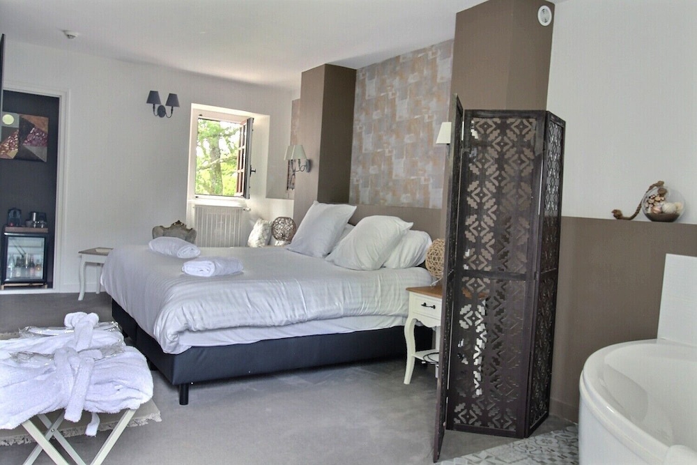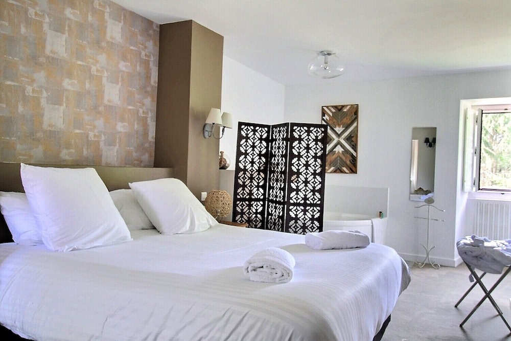 Prachtige entourage; onlangs gerenoveerde mansion met mooie tuin en klein zwembad. Eigenaren zeer vriendelijk. Frisse, sfeervolle, eigentijdse ingerichte kamer met apart toilet (=erg krap), wel ruime doucheruimte met rituals badspullen, flesje water, nespresso apparaat. Magnetron mag je gebruiken in de lounge.