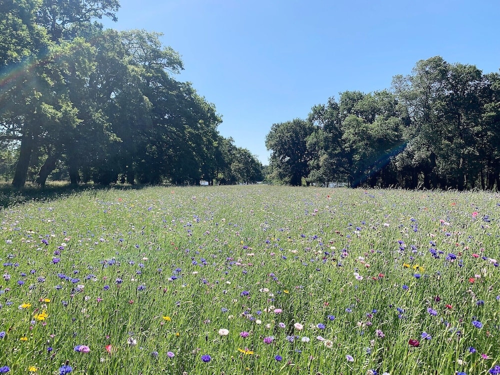 C'est un lieu très agréable. Le parc donne sur un étang, on voit les cheveux et les vaches de la propriété voisine et on se réveille avec le chant des oiseaux !