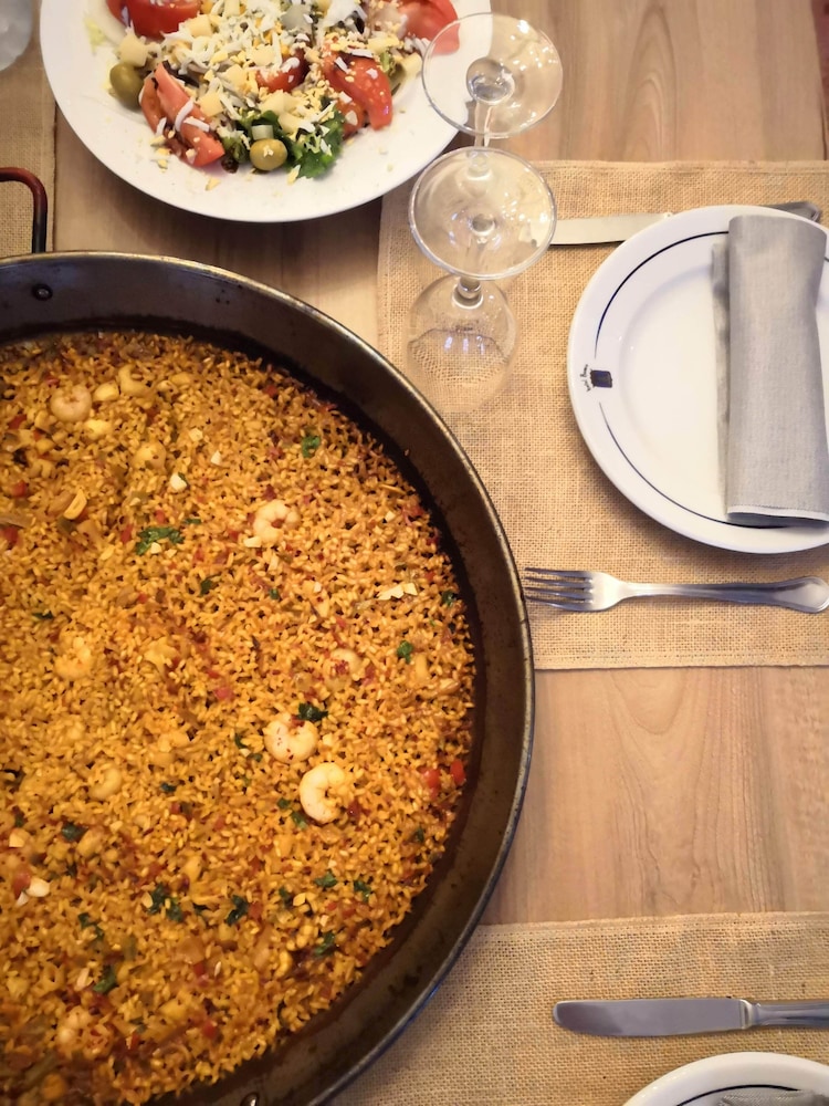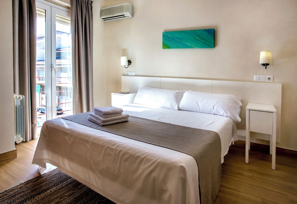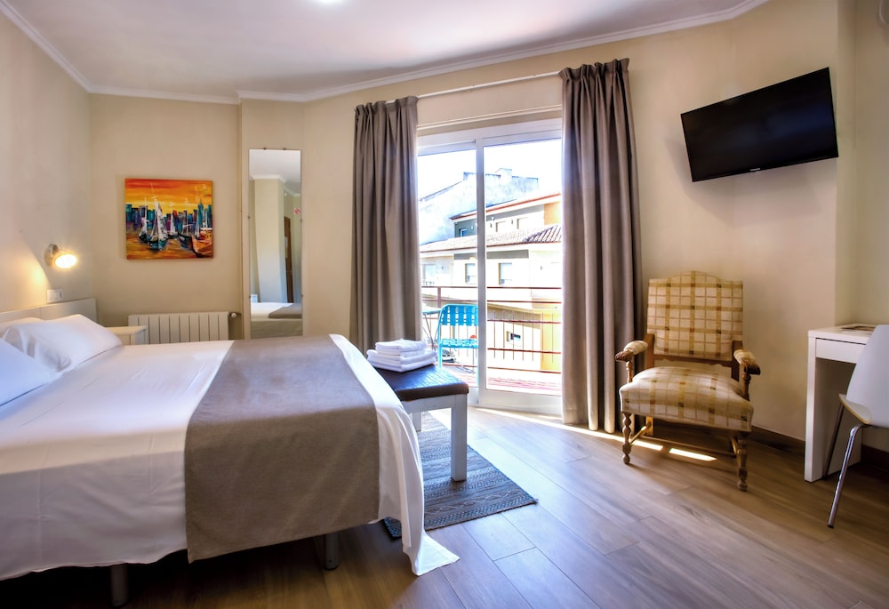 Como puntos negativos estuve en una habitación que daba a la calle y el trafico se escucha bastante con la ventana abierta (cerrada no se escucha), ademas tuvimos la mala suerte de coincidir con fiestas del pueblo y hubo pasacalles hasta la 1 de la mañana. Recomiendo pedir habitación que de al patio y mirar el calendario de festejos (creo que los 3 primeros fines de semana de julio tienen si quieres tranquilidad