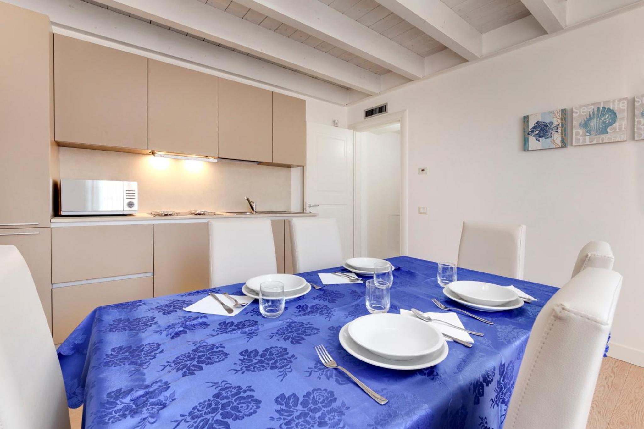 Residence La Fontaine is an exquisite retreat nestled in Venice Lido, offering a tranquil garden and seamless WiFi connectivity.