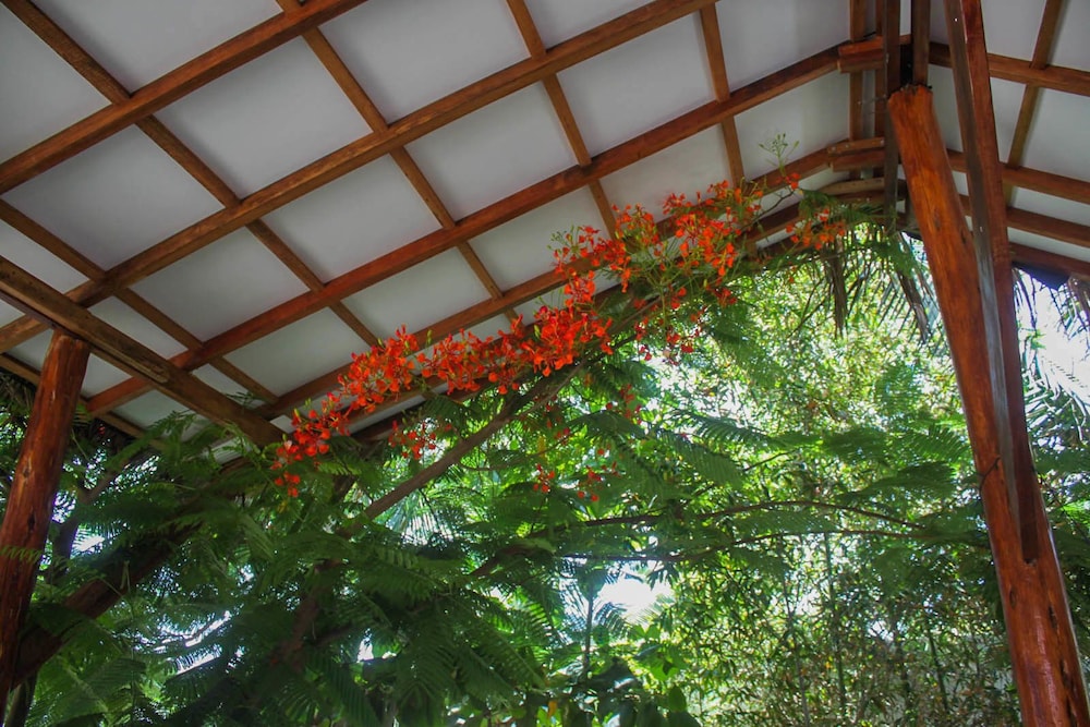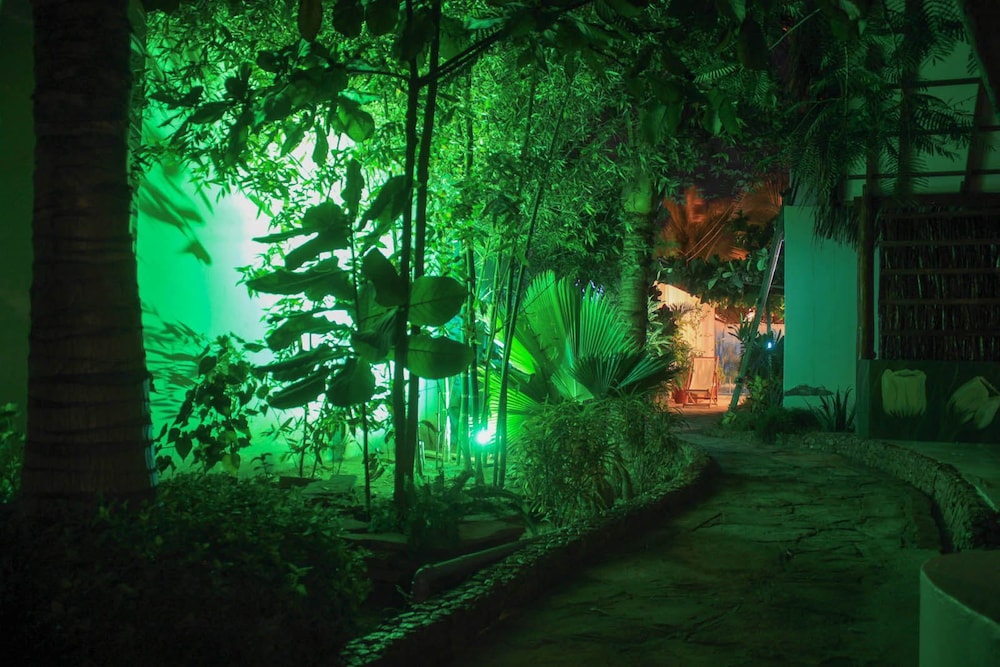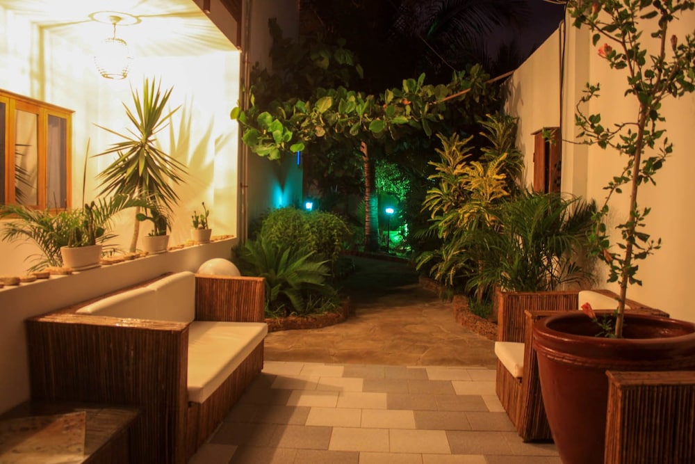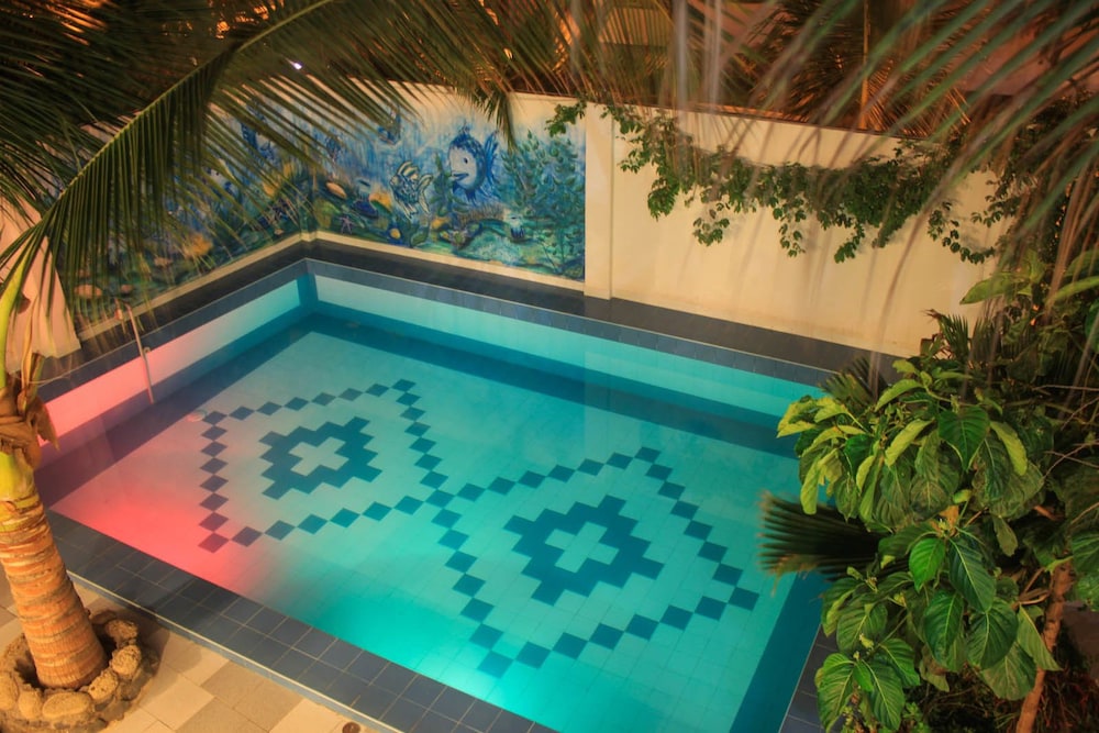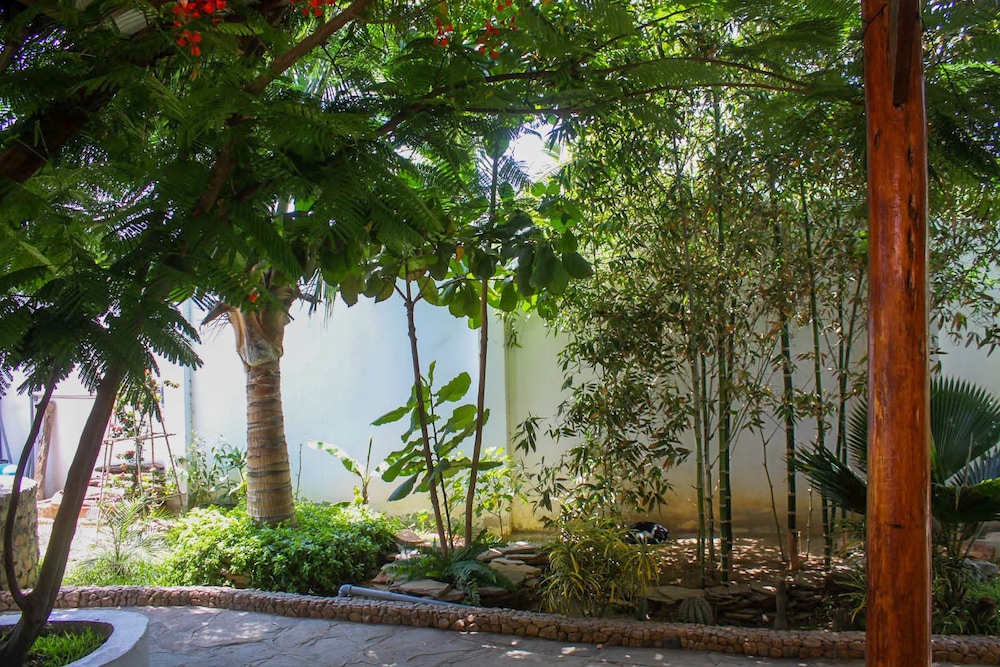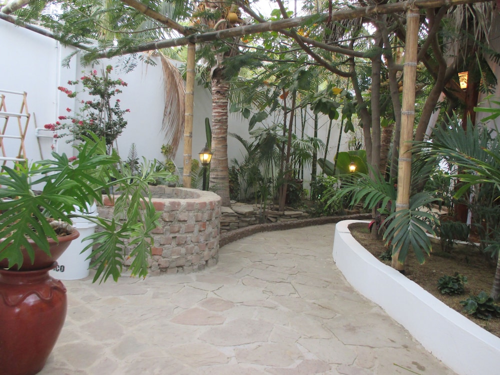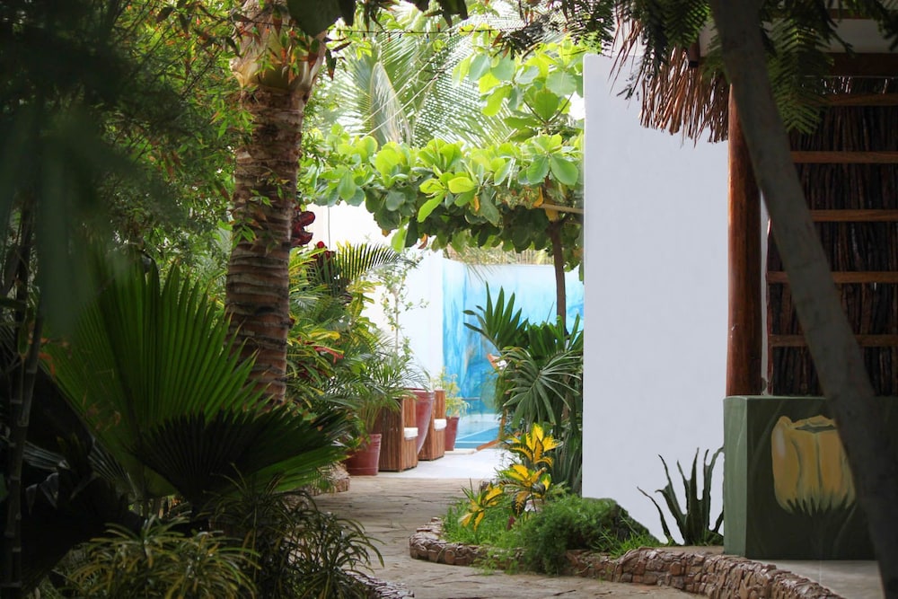 Recreation Amenities and View: Enjoy the outdoor pool and garden views at Hotel Mama Sirena.