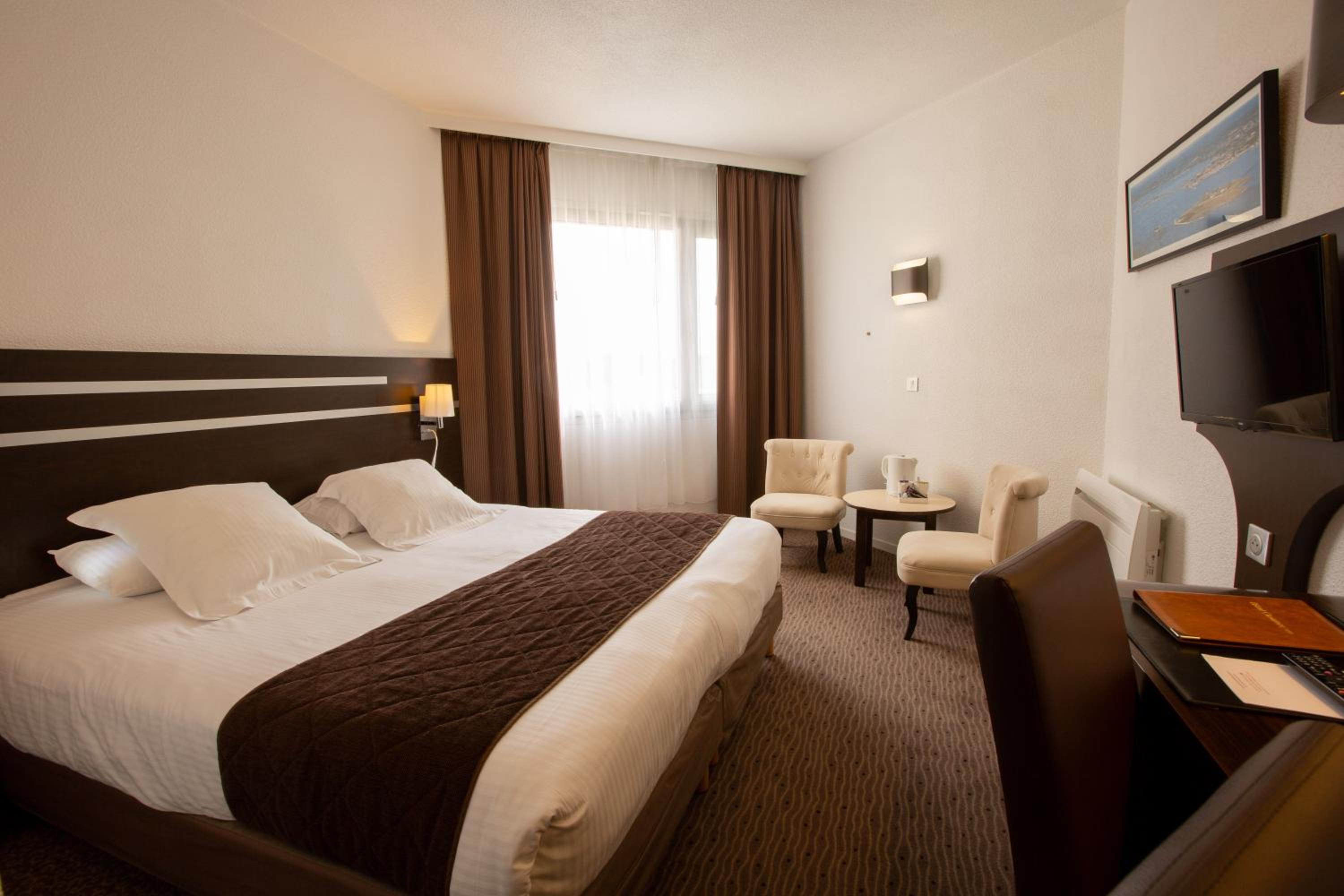 Benefit from the hotel's prime location, serving as an ideal base for exploring Cherbourg and its nautical events. The dedicated staff are on hand 24/7 to assist in organizing your itinerary, while complimentary parking nearby adds to the convenience of your stay.