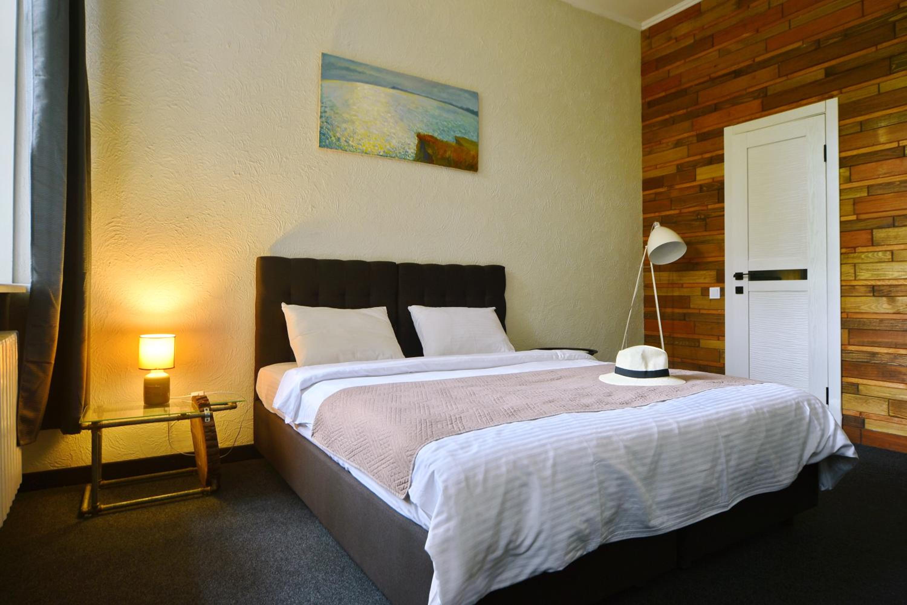 Гарний готель, цікавий інтерьєр, ввічлива жіночка адміністратор Тетяна, порадував м'який матрац, дозволили залишити речі після виїзду.