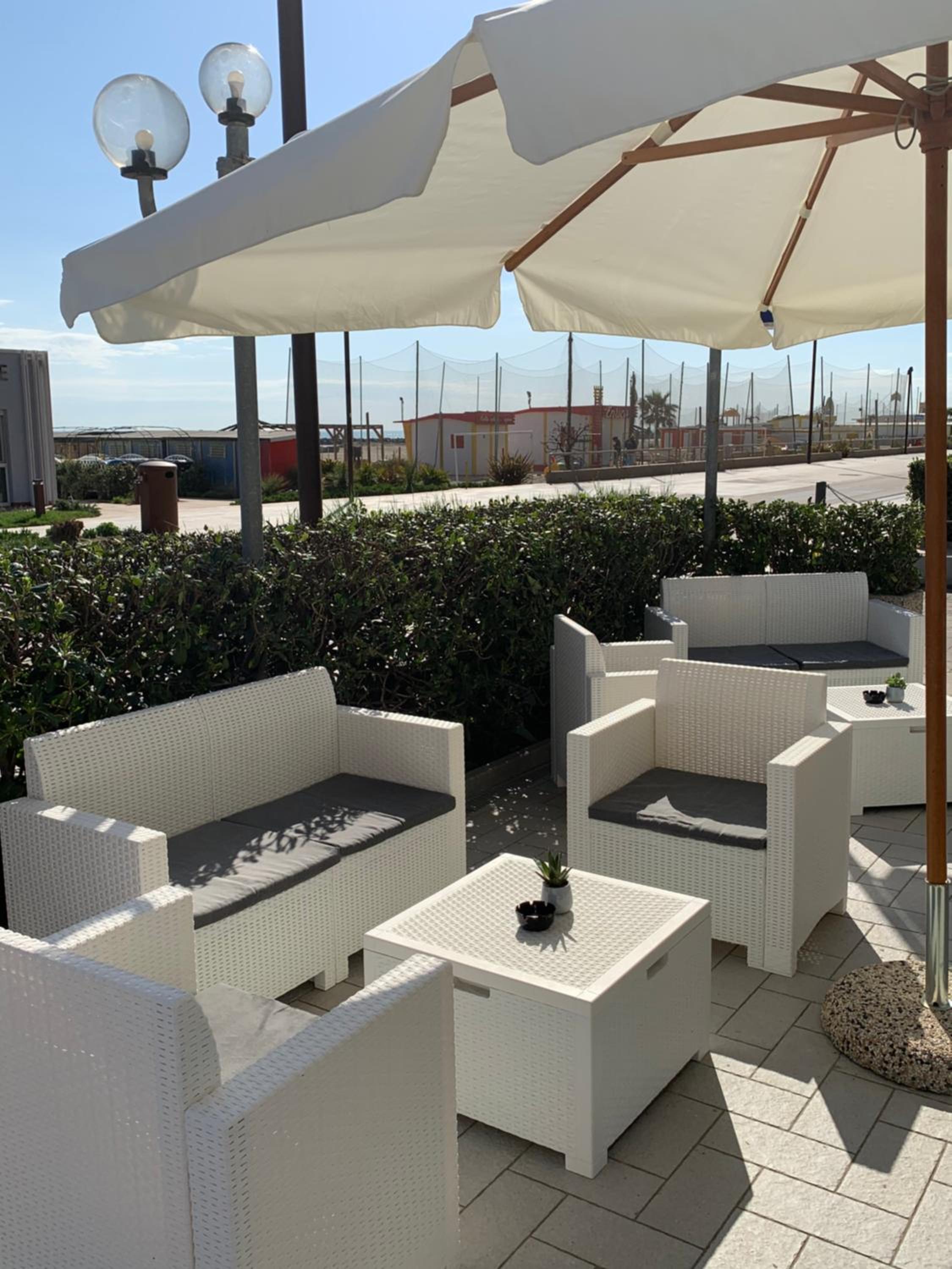 Gemütliche Terrasse (Ruhebereich) am Eingang des Hotels.