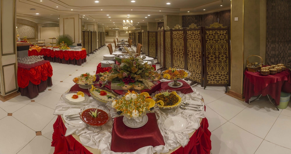 Very friendly people. I had very little time for laundry and they did it in a couple of hours. Wonderful service. It is one of the oldest hotels so it’s a little out dated but still in very good conditions. No restaurant but their bar food is great and continental breakfast is also good and lots of food. Coffee is made at the moment you order it is fresh and delicious. Rooms are very spacious and very Saudi decor.
