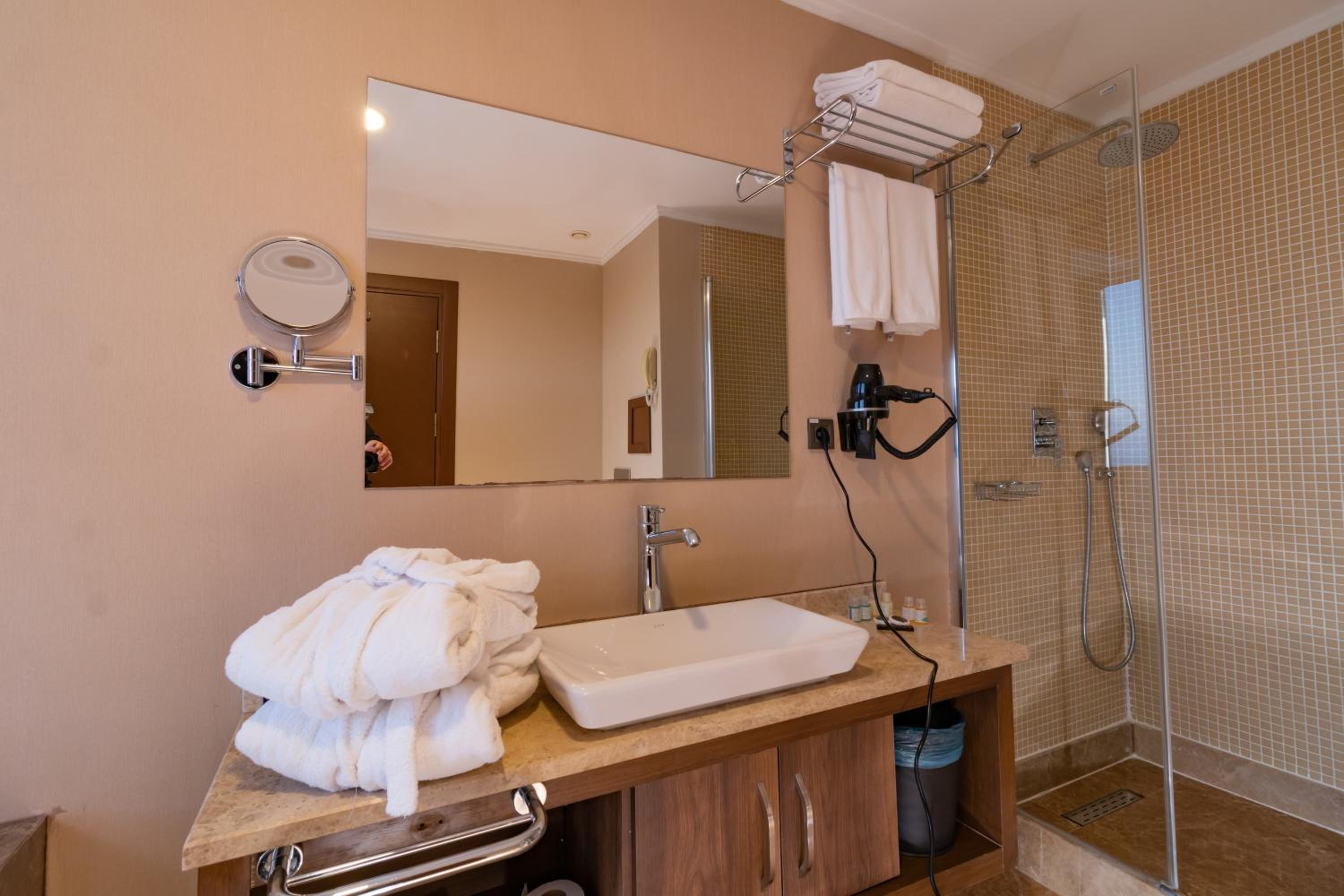 Я всегда обращаю внимание на мелочи и к сожалению есть вещи которые испортили впечатление от отеля. В номере с видом на море нет балкона, после аквапарка вы просто не сможете просушить ваши вещи. Вид на море идёт подразумевает также и вид на автомобильную дорогу и в этом не было бы проблемы, но окна плохо отрегулированы и не закрываются плотно, щели в некоторых местах почти 5 мм. Фактически даже с закрытыми окнами вы слышите все машины и грузовики которые проезжают мимо. Мы сразу включили кондиционер в номере и оказалось, что он очень сильно шумит, я открыл его и проверил фильтр, он оказался катастрофически забит грязью, его пришлось мыть, так как дышать такой грязью в номере мы не хотели. Судя по количеству грязи его не обслуживали несколько лет и все гости дышали этой грязью. После этого кондиционер стал работать гораздо тише. Состояние ванной не очень хорошее, в некоторых местах есть плесень, кнопки унитаза отвалились при первой же попытке его использования и упали в унитаз, пришлось доставать мыть и ставить на место. Вокруг раковины отошла краска. Фен имеет повреждённые провода и не безопасен в использовании.