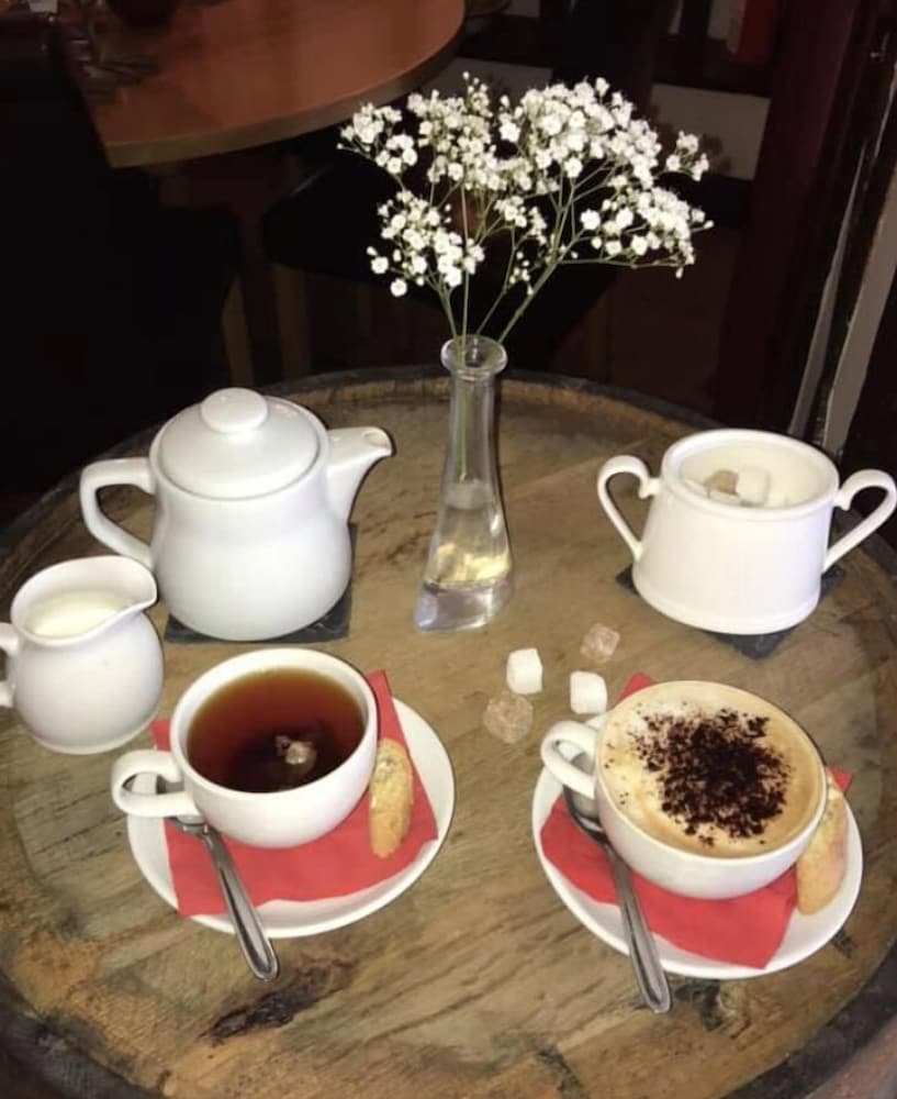 Firstly the positives. Nice big room mostly clean though a lot of cobwebs on the beams and the wallpaper needs replacing very comfortable bed and lovely bathroom with large shower. Well equipped lots of tea and coffee it even had a fridge with wasn’t plugged in so unsure it it worked. I noticed an ironing board outside the room and presumed it was for use of the guests