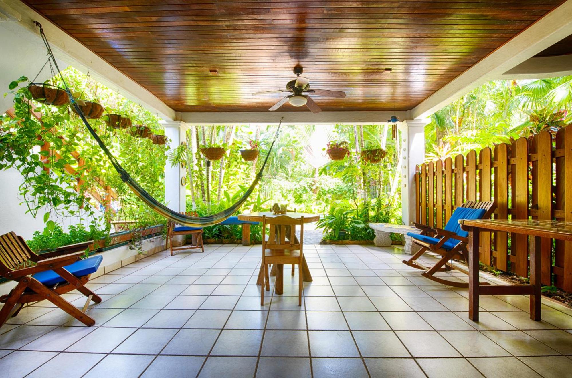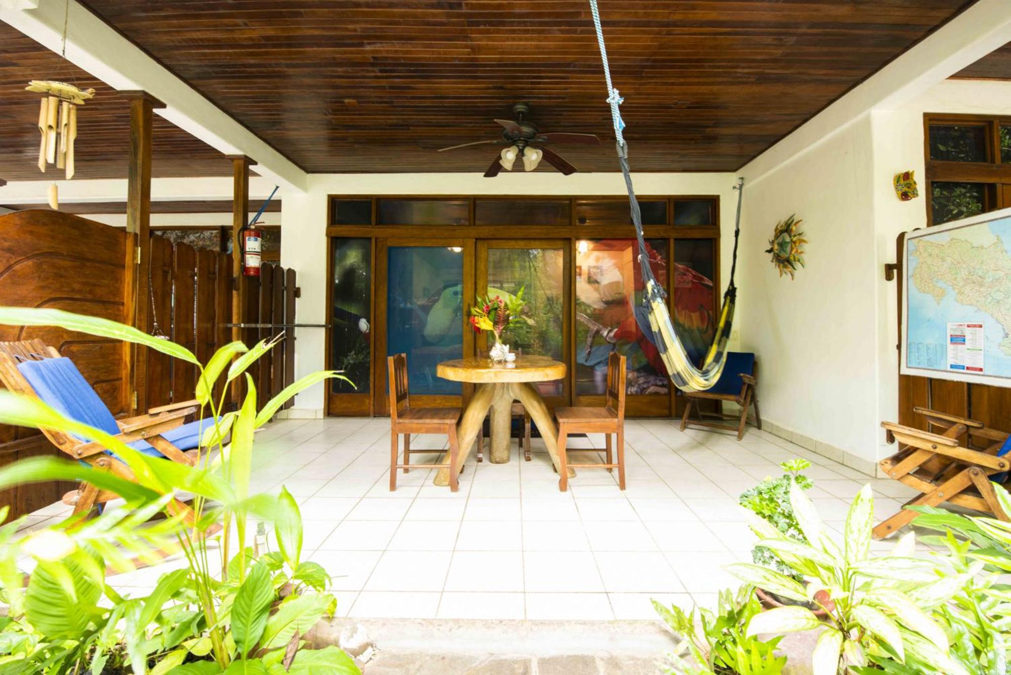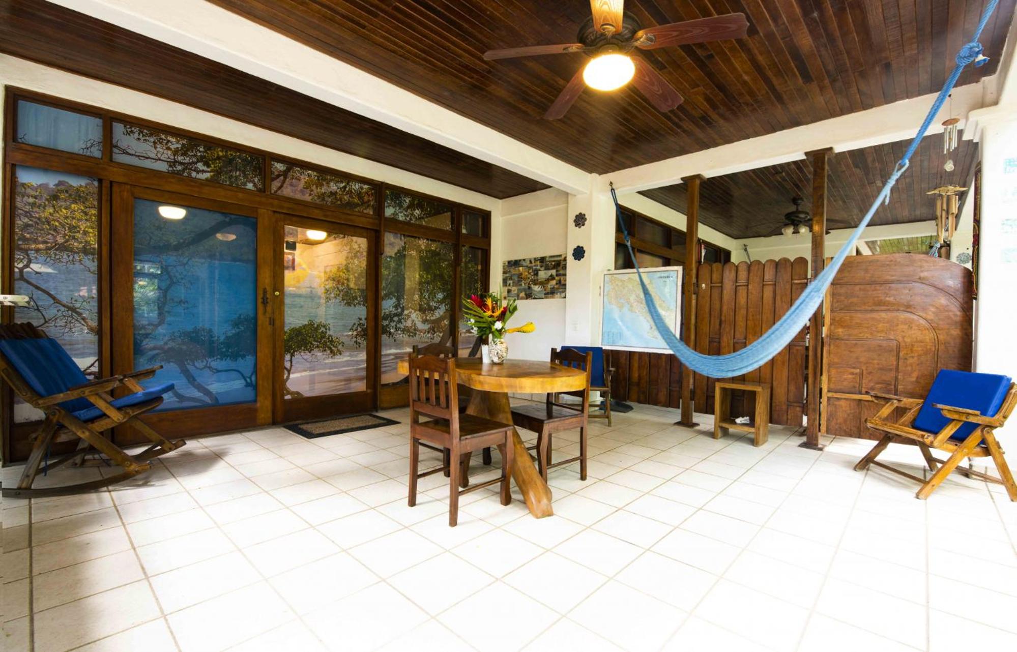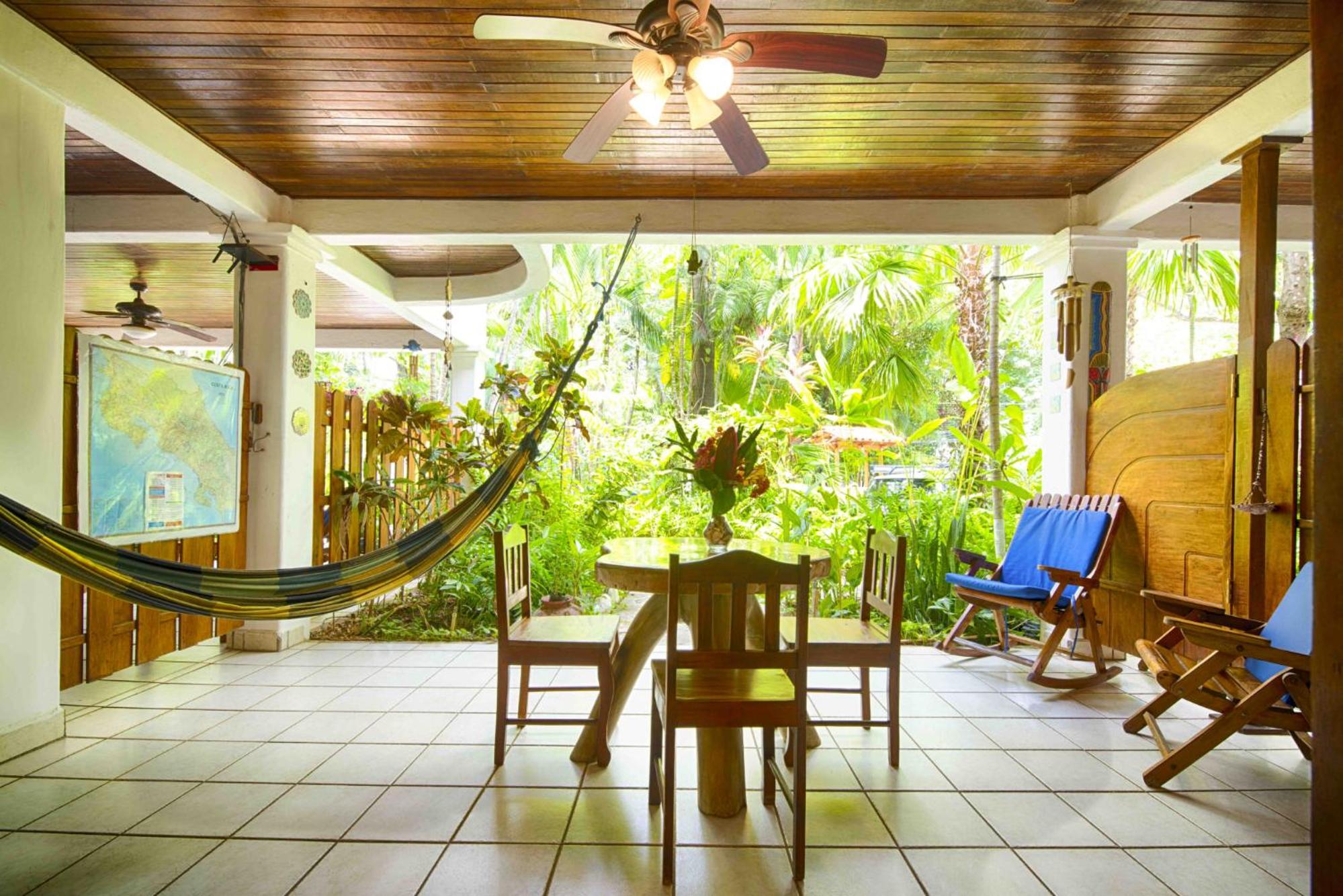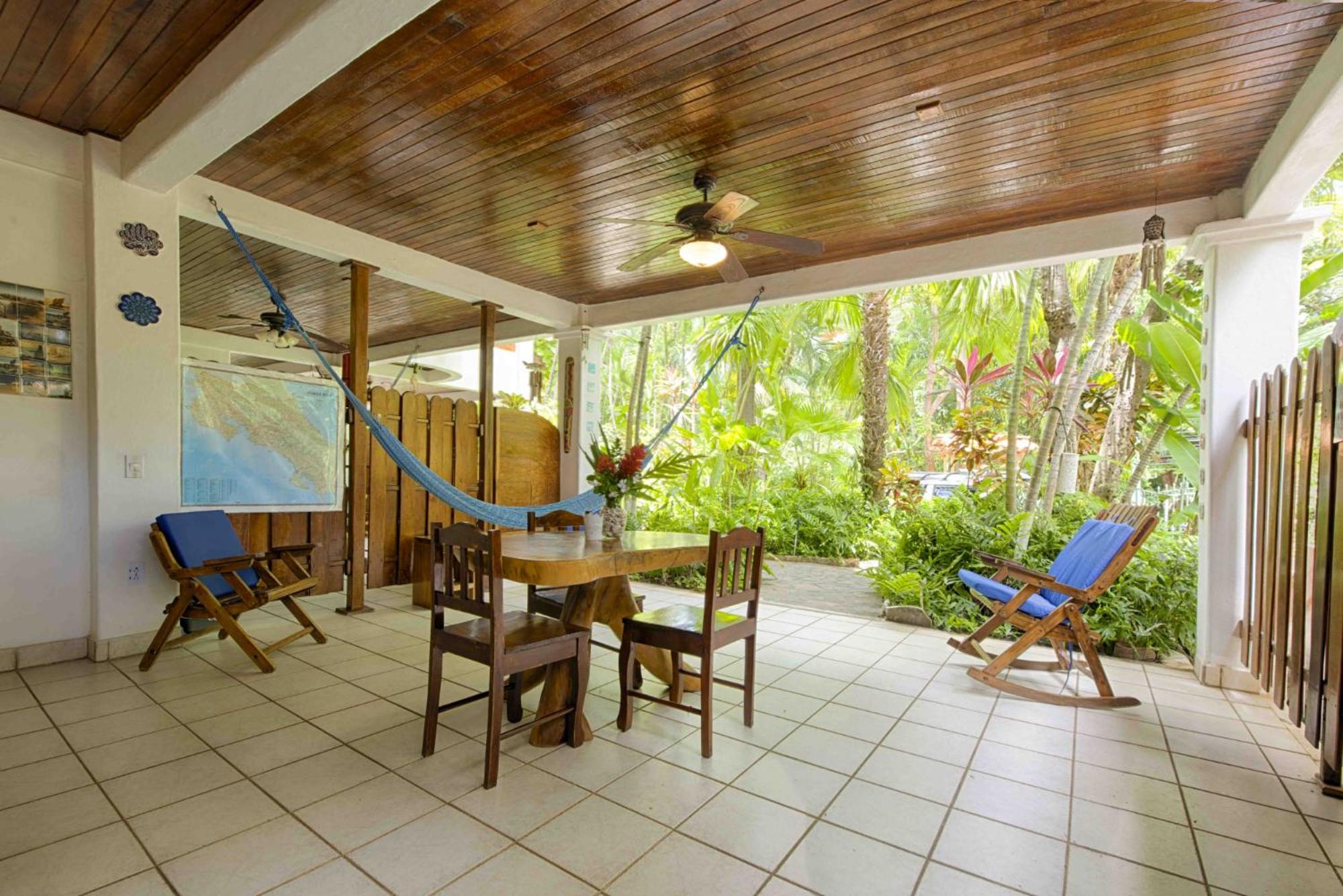 The large covered patio with table, chairs, hammock, and fans is really nice to have, especially during rainy season.