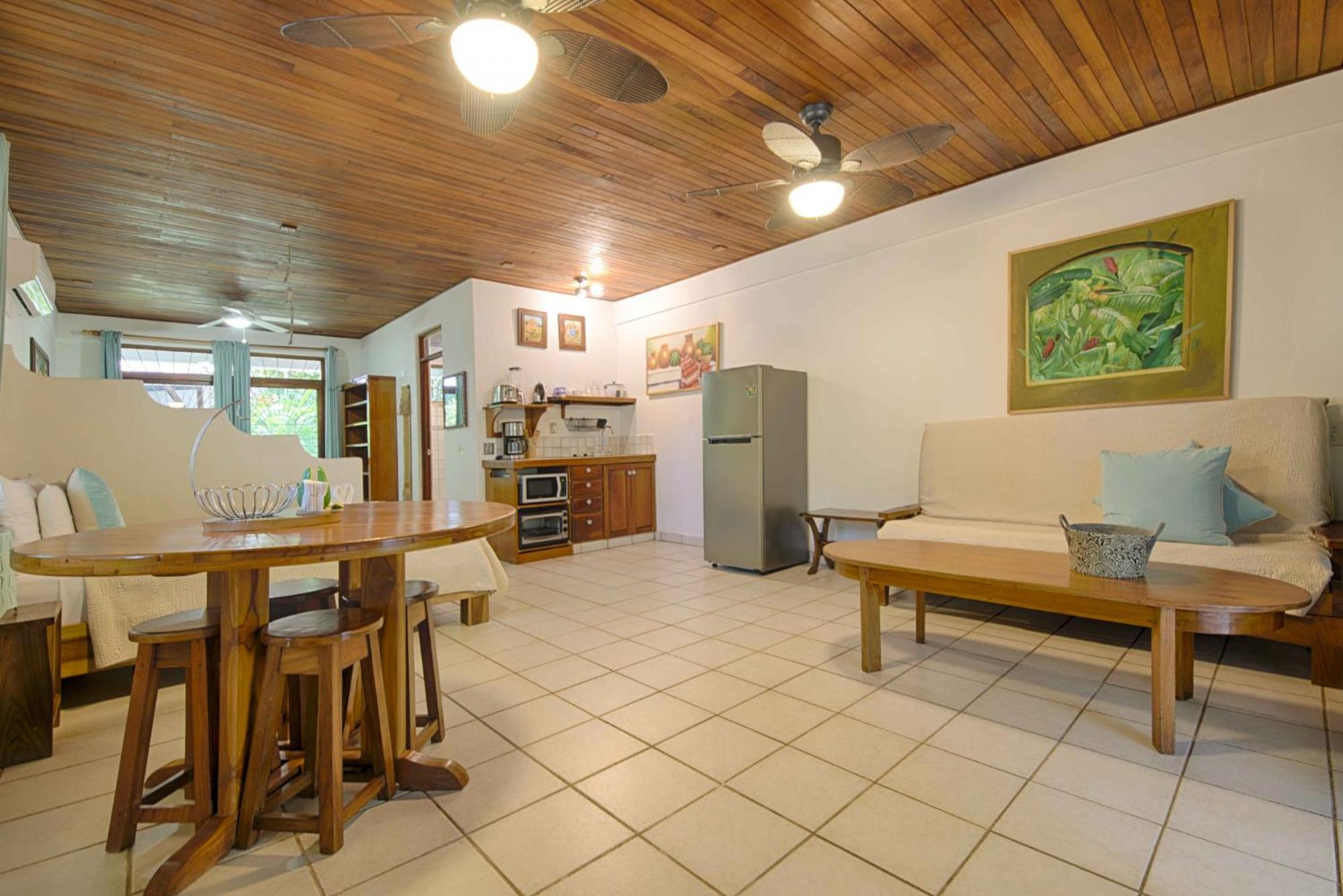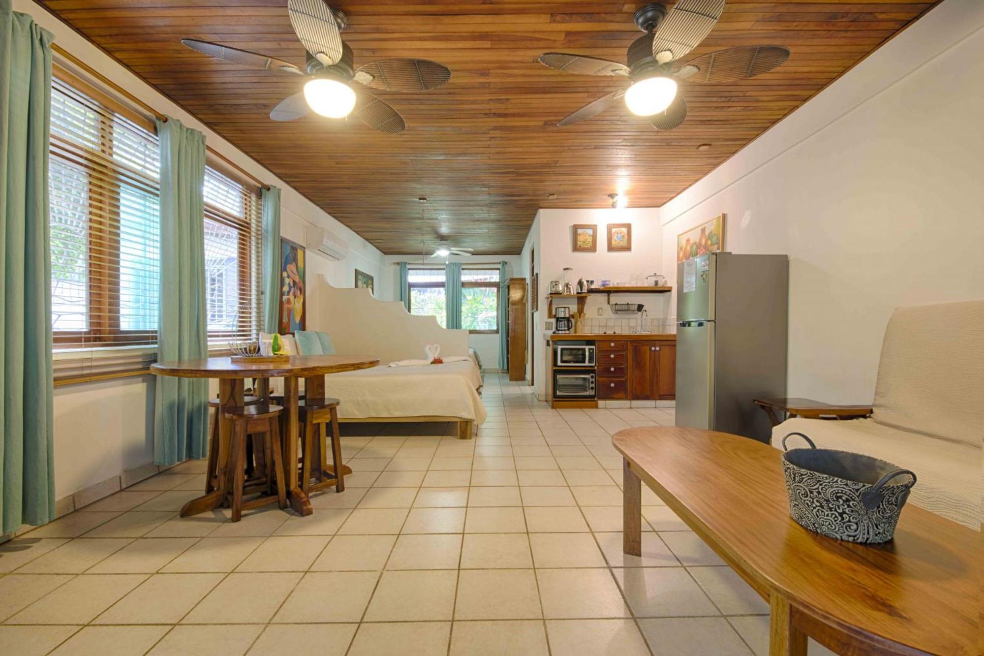 Modern Amenities: From air conditioning to flat-screen cable TV, our studios and apartments offer a comfortable stay with a touch of tropical flair.